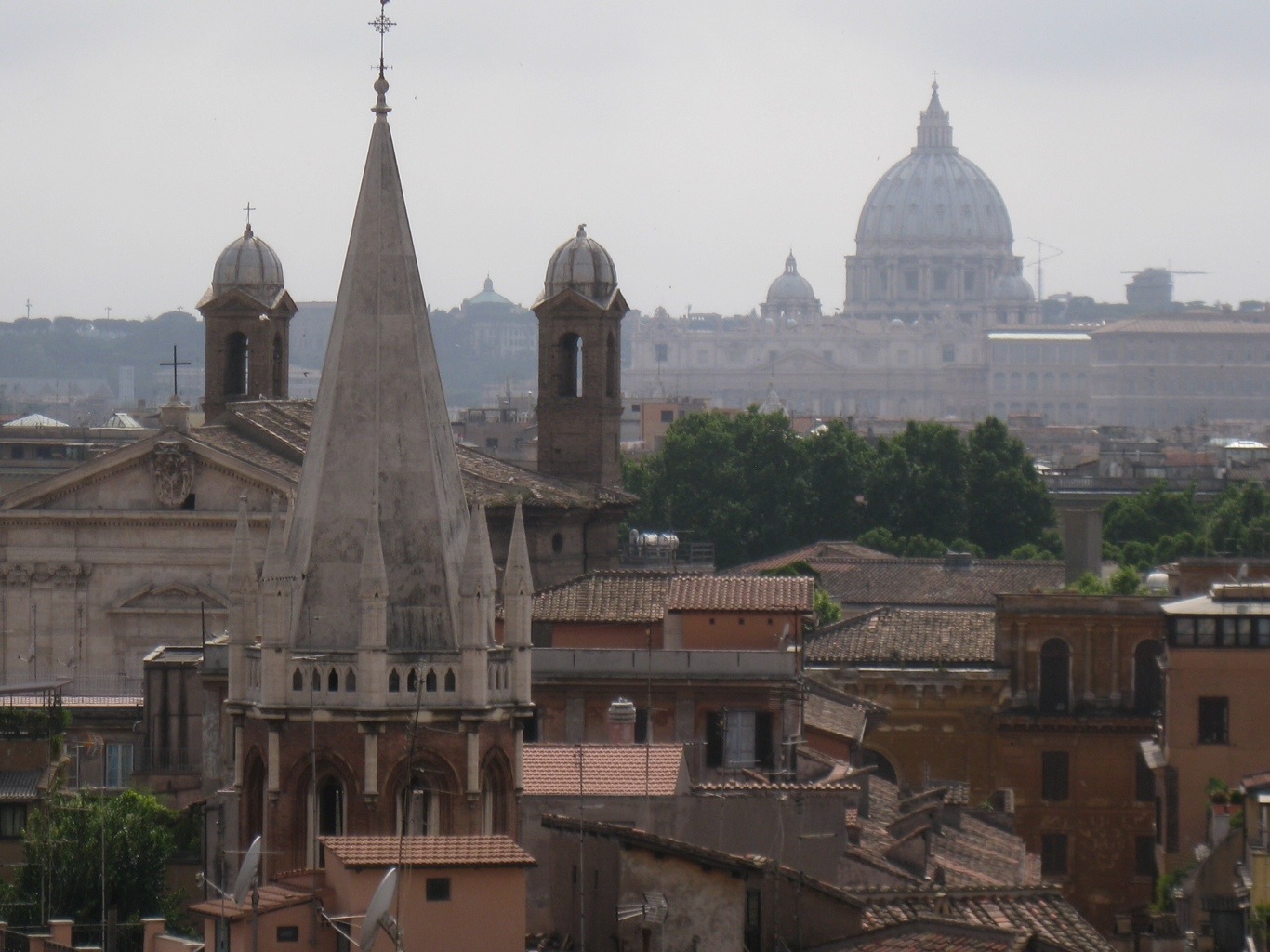 Here we see the spire of All Saints Anglican Church where SCP members will concelebrate Mass at the end of our conference. St Peter’s Basilica is off in the haze. My skills as a photographer must have preceded me as several couples asked me to take their photo with their camera. On the other hand I probably looked too tired to run off with it.
