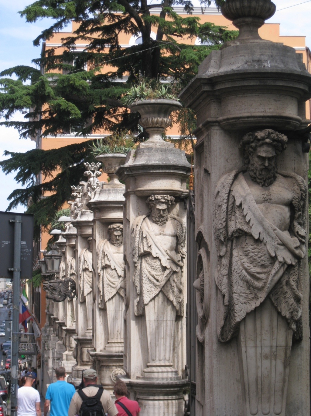 It’s enough to make a vicar thirsty! Today the sun is back out and so my hat is on. After church I have wandered back to the Piazza Barberini (above), calling in at the palazzo for today’s art fix. I think the palazzo has quite a grand fence (below) – Churchwardens please note.