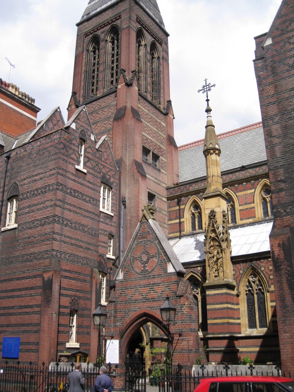 I have chosen to attend High Mass at All Saint’s Margaret Street, built in the latter half of the nineteenth century at the height of the Oxford Movement’s influence. Servers please note the height of the candles on the high altar (above)!
