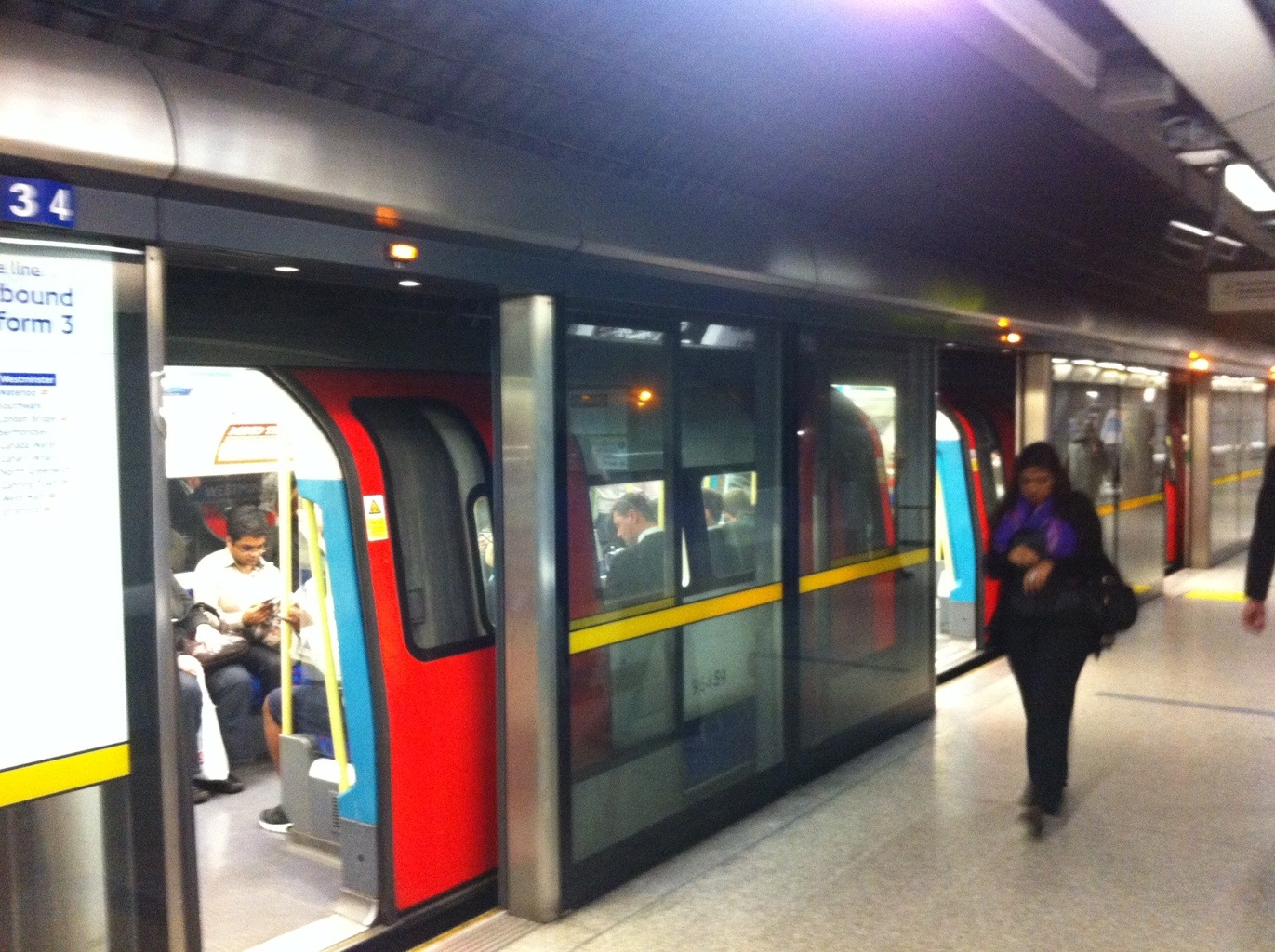 For some reason this is the deepest tube station, some 15 stories down. Access to the platforms is by lifts not escalators, but they do operate very efficiently. I have not been on the Jubilee line (below) and whilst I know it was named after an earlier jubilee of HM, it still seemed appropriate to use it on this occasion.