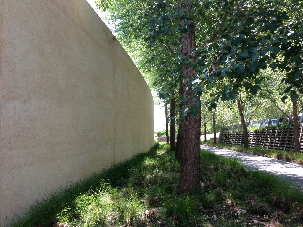 The museum is quite impressive, built of pressed earth and set in landscaped grounds with a lake. Inside the main exhibition space is large and I liked the full length window overlooking the locality (here featuring Bruce in silhouette).