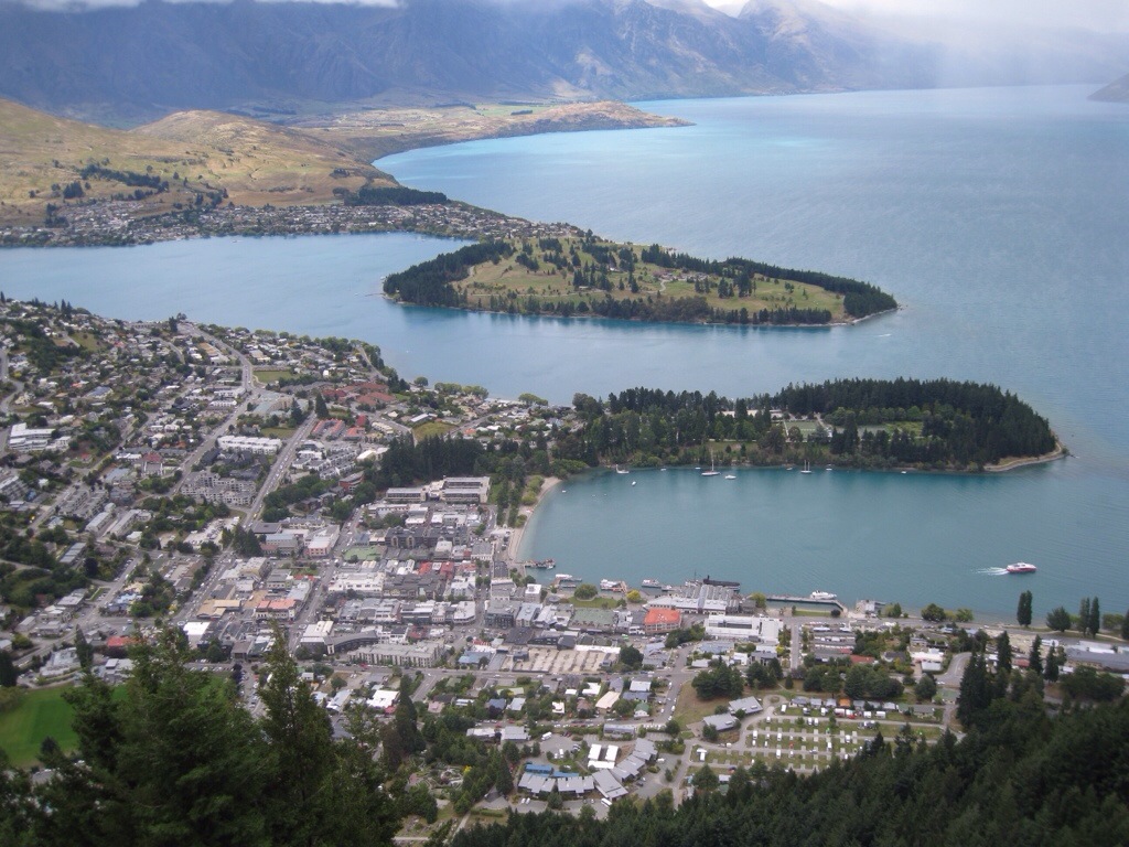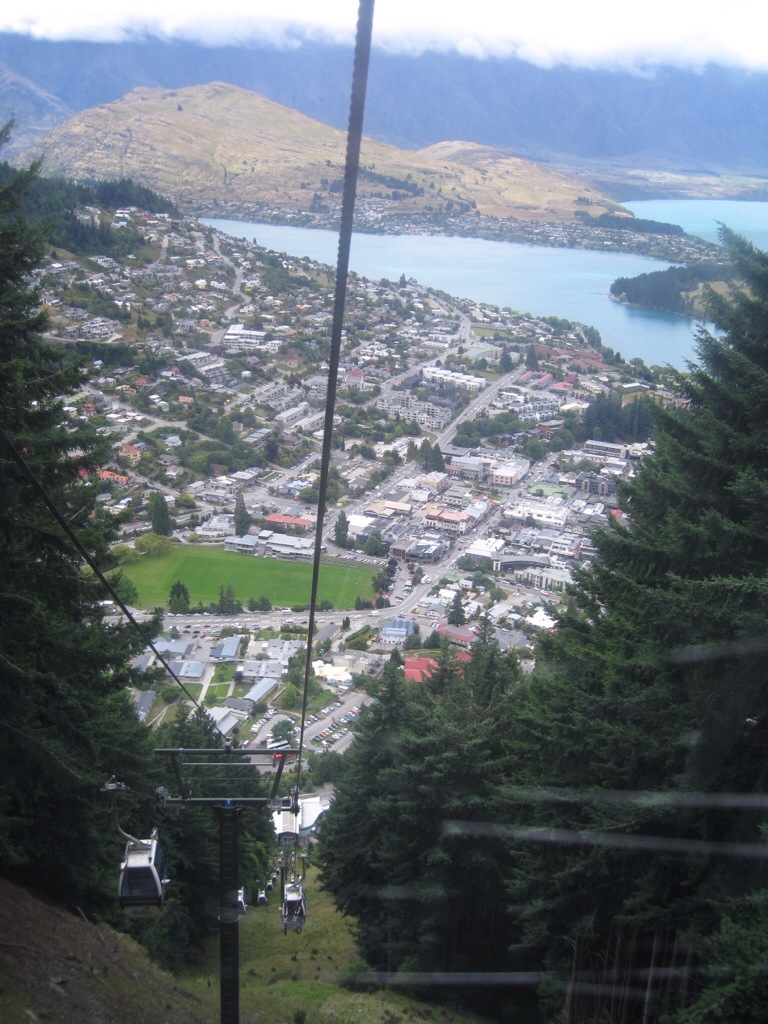 Of course I arrived before anyone in Queenstown was prepared for me, so I took advantage of the quiet morning to take a gondola ride up a nearby peak to see the town, literally, from above. It was a spooky ride as I am not a height-person in a shaky little box hanging from a metal string, but I made it, pleasingly in a gondola by myself. I was able to turn around and take the above photo without rocking the boat too much.