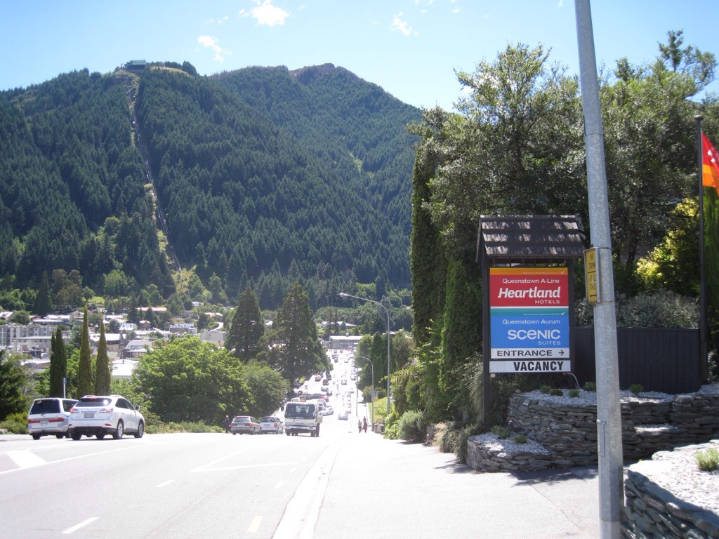 That’s my balcony, with the red chair. Quite a pleasant apartment suite, just up coronary hill (below) from the town centre – a nice walk down, but an incline on the return.