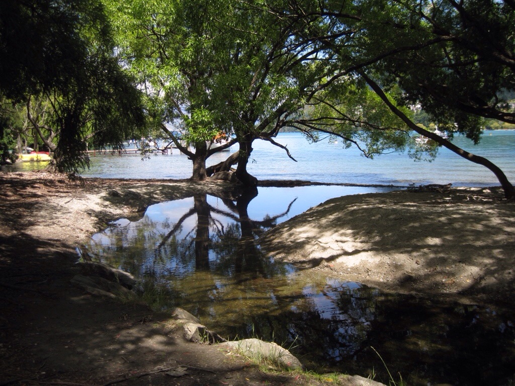 One of the deficits of travelling on the cheap is that you have to take the early and late flights to save money. This brings you to a new city before the room is ready or requires you to fill in a full day with no room to go back to before your flight leaves – today I leave at 5.30pm. So more walking around the town, perhaps some time in my favourite seat in the Queenstown Gardens, just on the edge of the beach (view below).