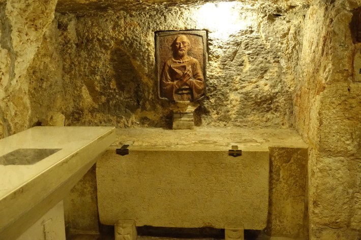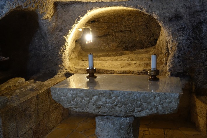 Jerome came to this holy site and lived in a cave (next door) for some years whilst he translated the old and new testaments into Latin.