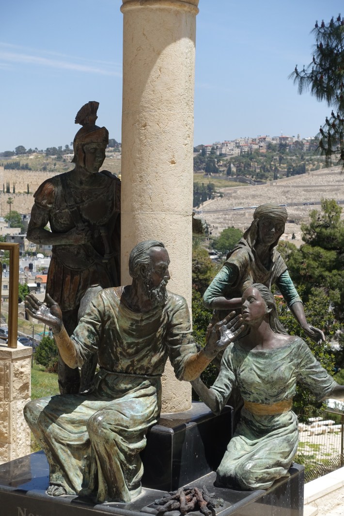 Outside the church of St Peter in Callicantu is a statue of Peter with three figures representing each of his denials.