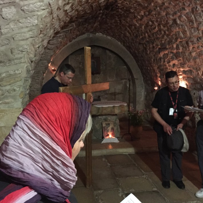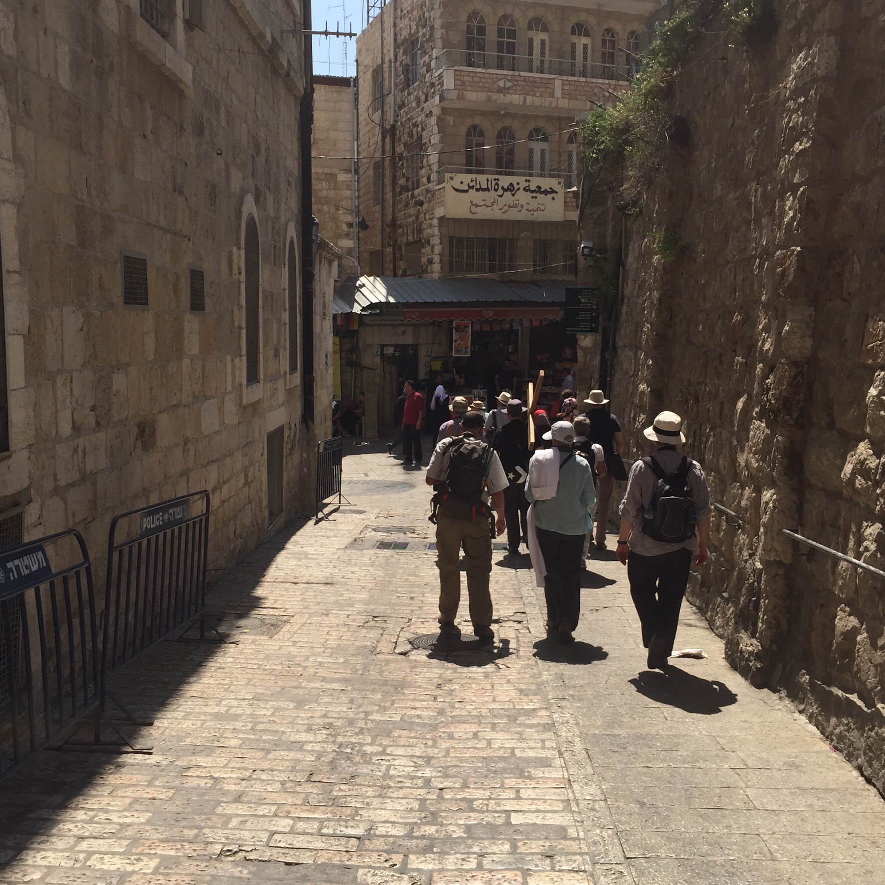 We followed in Christ’s footsteps along the Via Dolorosa taking turns to carry a replica cross, and marking each station with prayers.