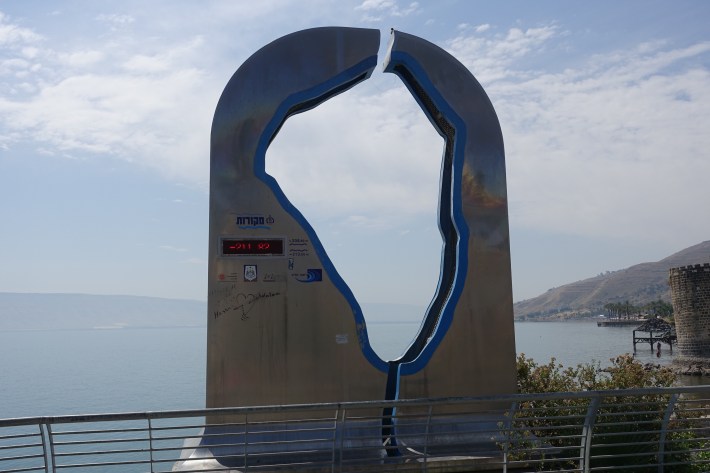 The Sea of Galilee is an important water source for the whole country, so at various points there were indications of the height of the water level (a minus number because it is below sea level).