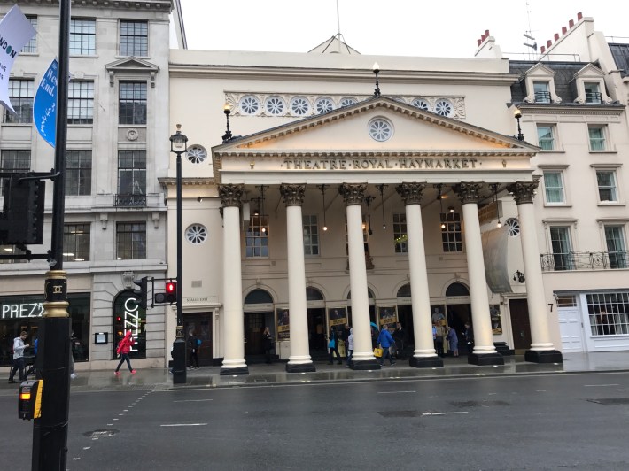 After the surprise of my first-booked play, ‘Common’ at the National Theatre, having its performance cancelled on my first evening in London (though unrelated to the atrocities what would befall Southwark that same evening), I was hoping that this problem wasn’t going to be contagious. Of course it rained on the way to the Theatre Royal last night but I had my trusty Michelin Man jacket with me, and have discovered it thankfully has an internal pocket just perfect for theatre programs – who knew?