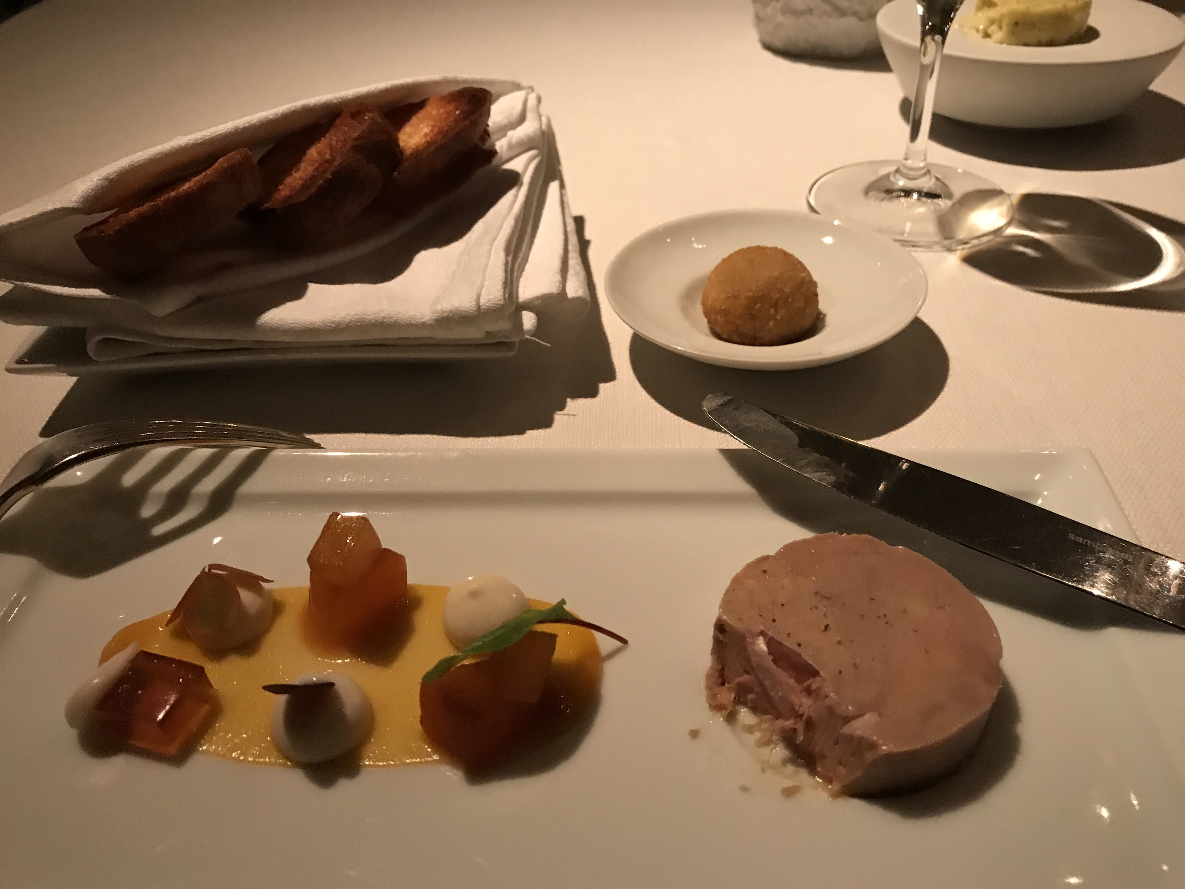 The first course was a ballotine of Foie Gras and almond milk (above).