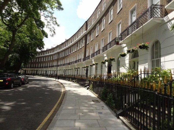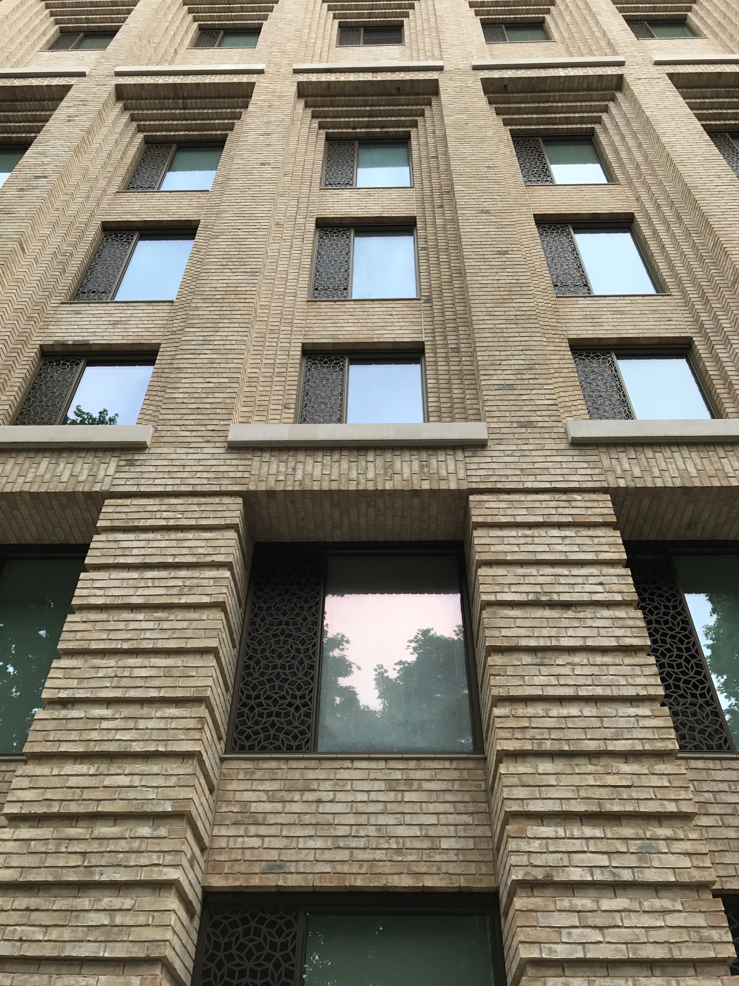 Across the gardens and tennis courts in the Centre of my crescent, Cartwright Gardens, is a new residential building for the University of London – One Cartwright Gardens. Lovely to see real masonry work instead of preform concrete.