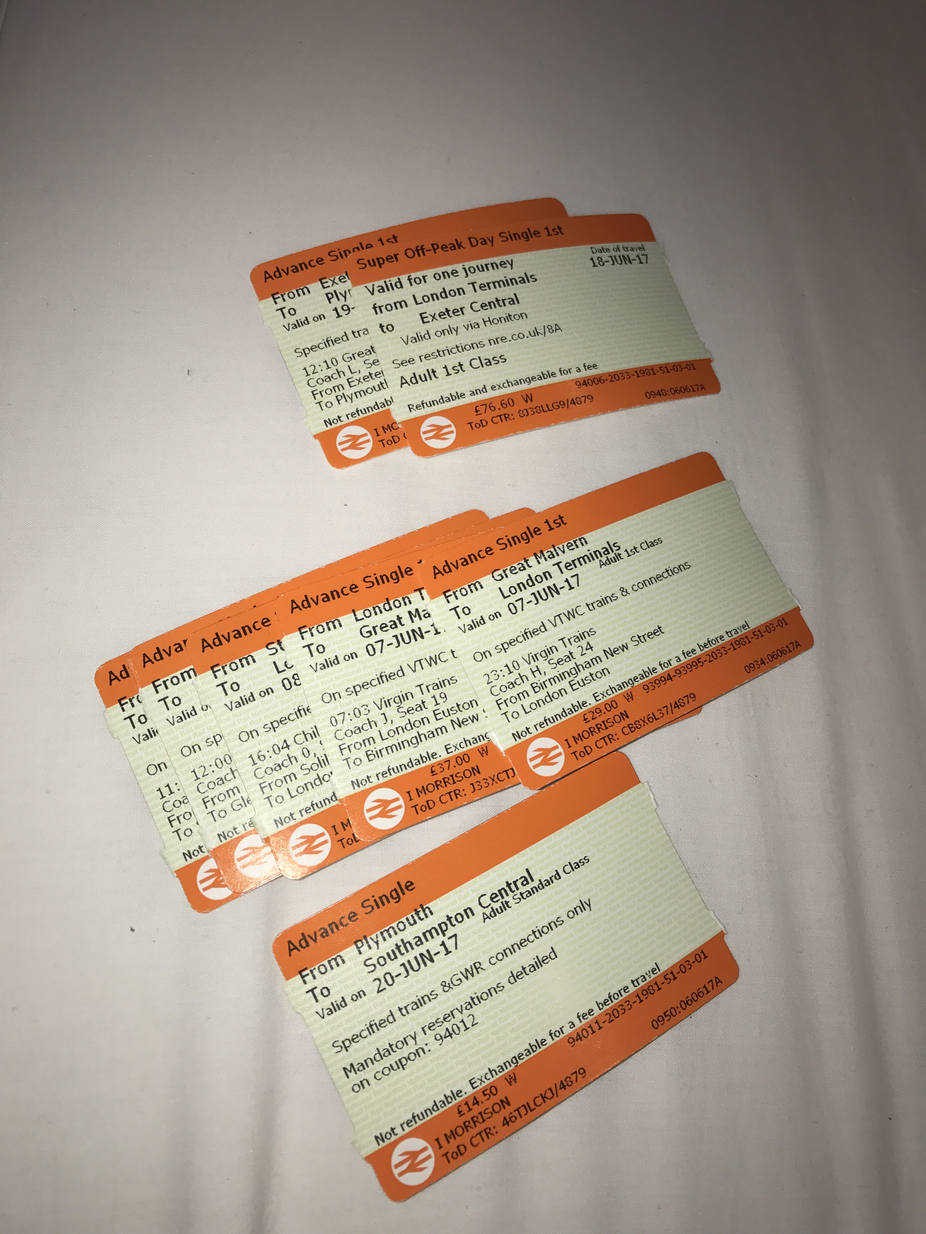 Sorting through all my train tickets in anticipation of journeys around England is a joy. Let’s hope all the train connections match up.