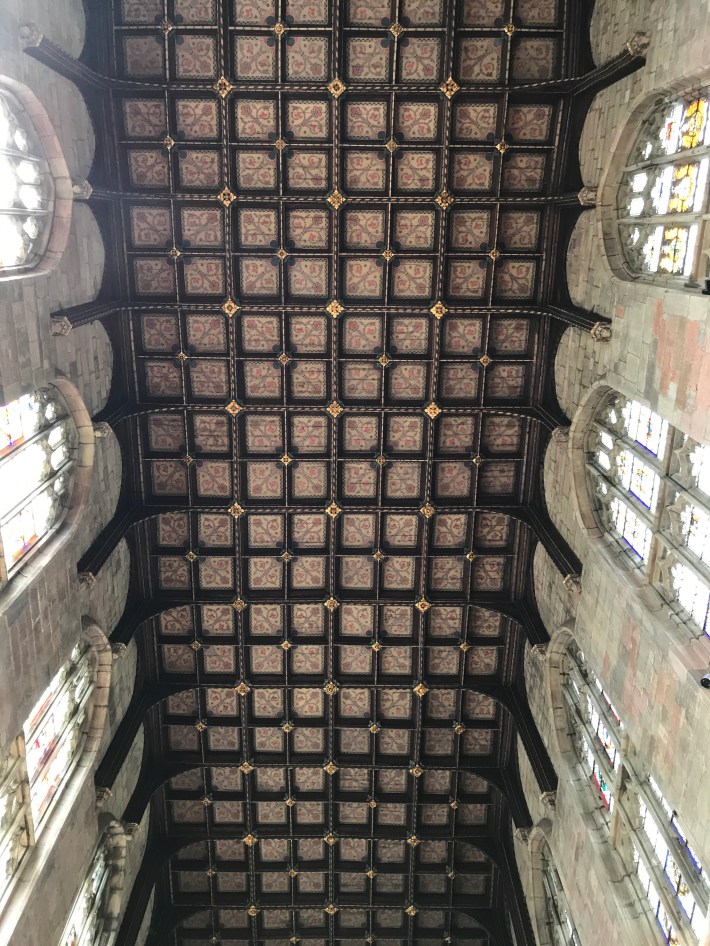 The painted ceilings are Victorian copies of the original medieval ones.