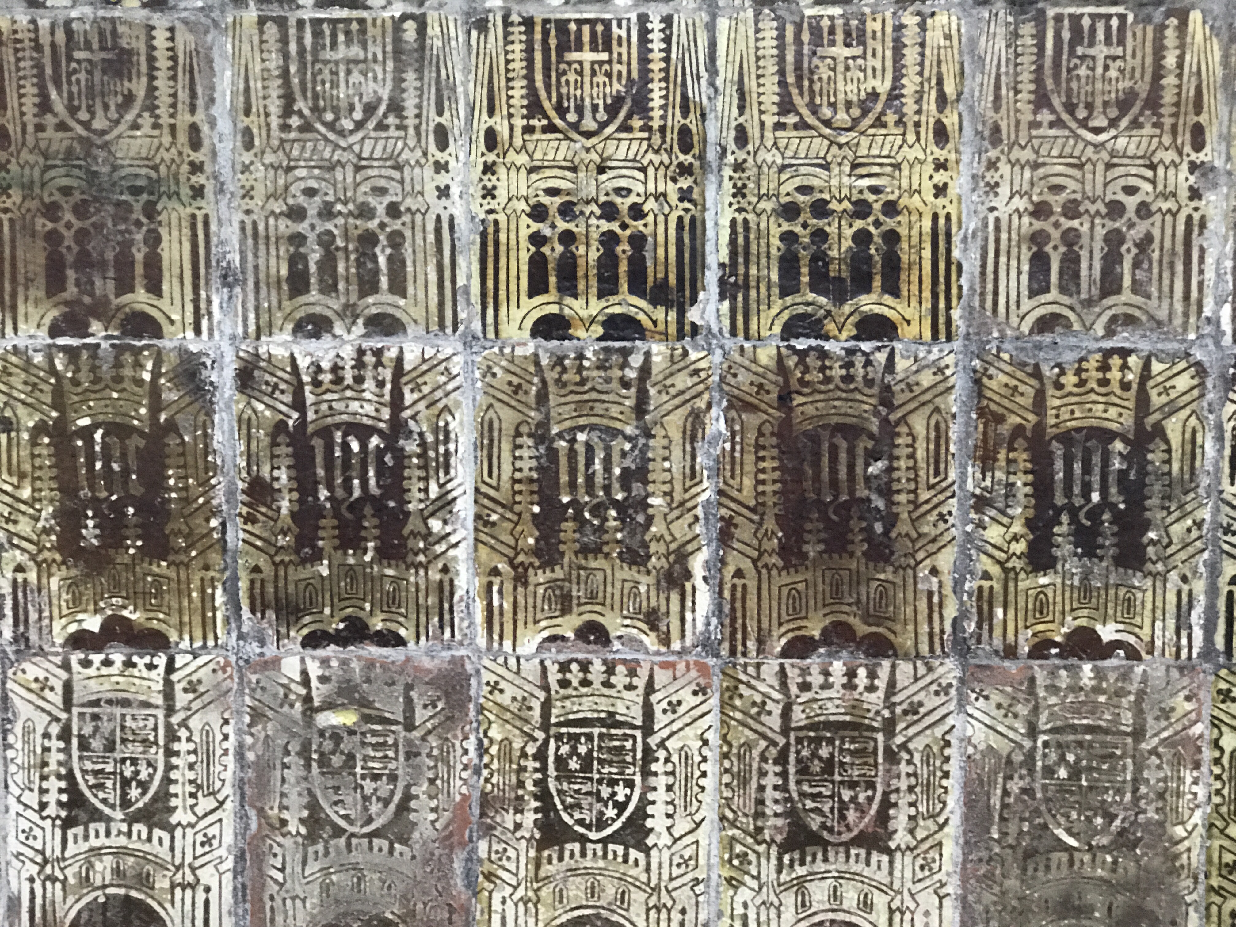 Decorating the rounded wall of the apse are many medieval tiles which were made in kilns just a few hundred yards from the Priory. They date from between 1450 and 1500 and once completely covered the floor and parts of the walls. The tiles now covering the floor of the church are Victorian copies which were made by the Minton Factory.