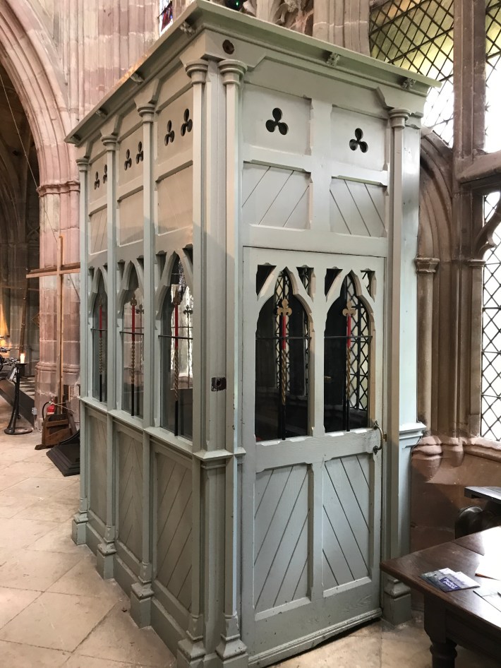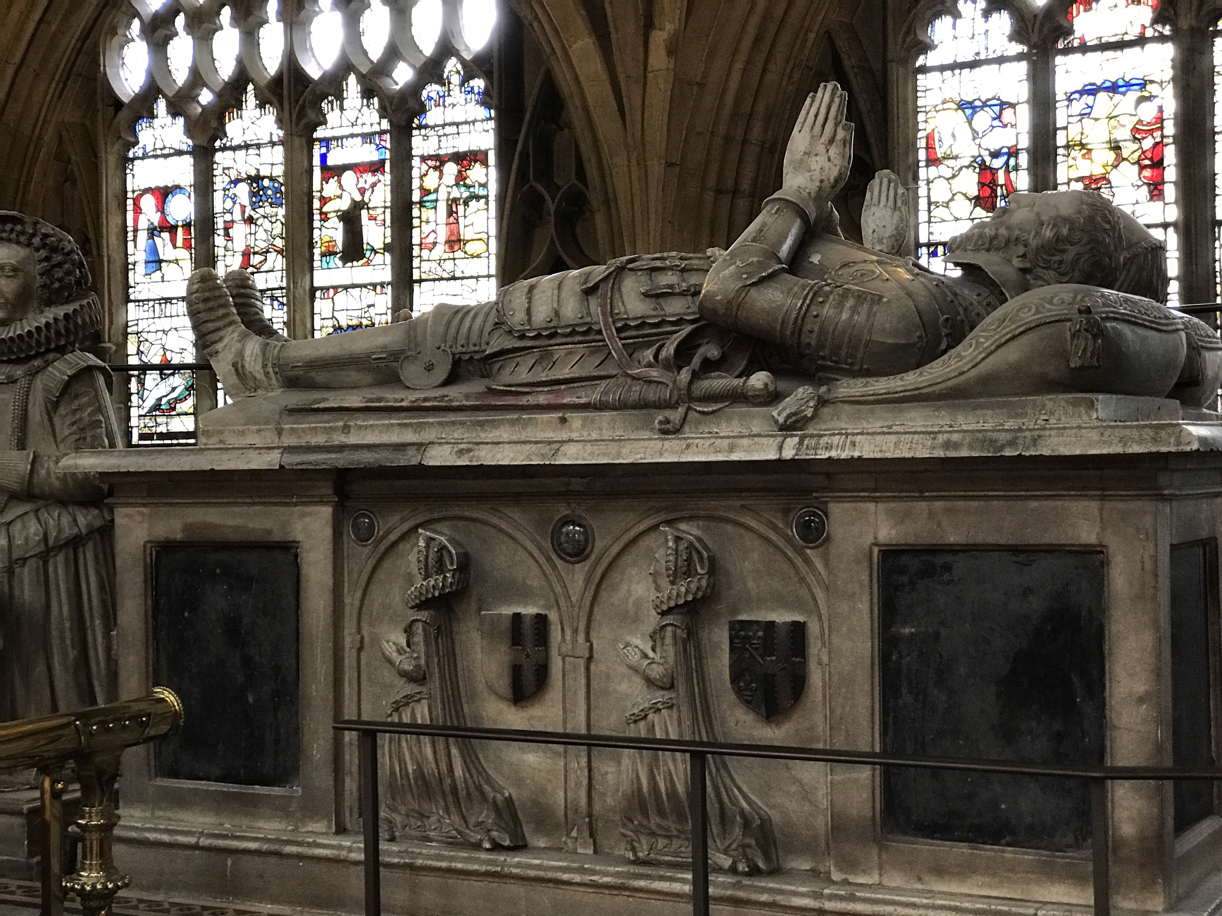 This Elizabethan alabaster tomb is a memorial to John and Jane Knotsford who died in the 1580s. It was erected by their daughter Anne, who is shown kneeling at a prayer desk at their feet, slightly obscured by my poor photography – Verger Leslie, I need lessons.