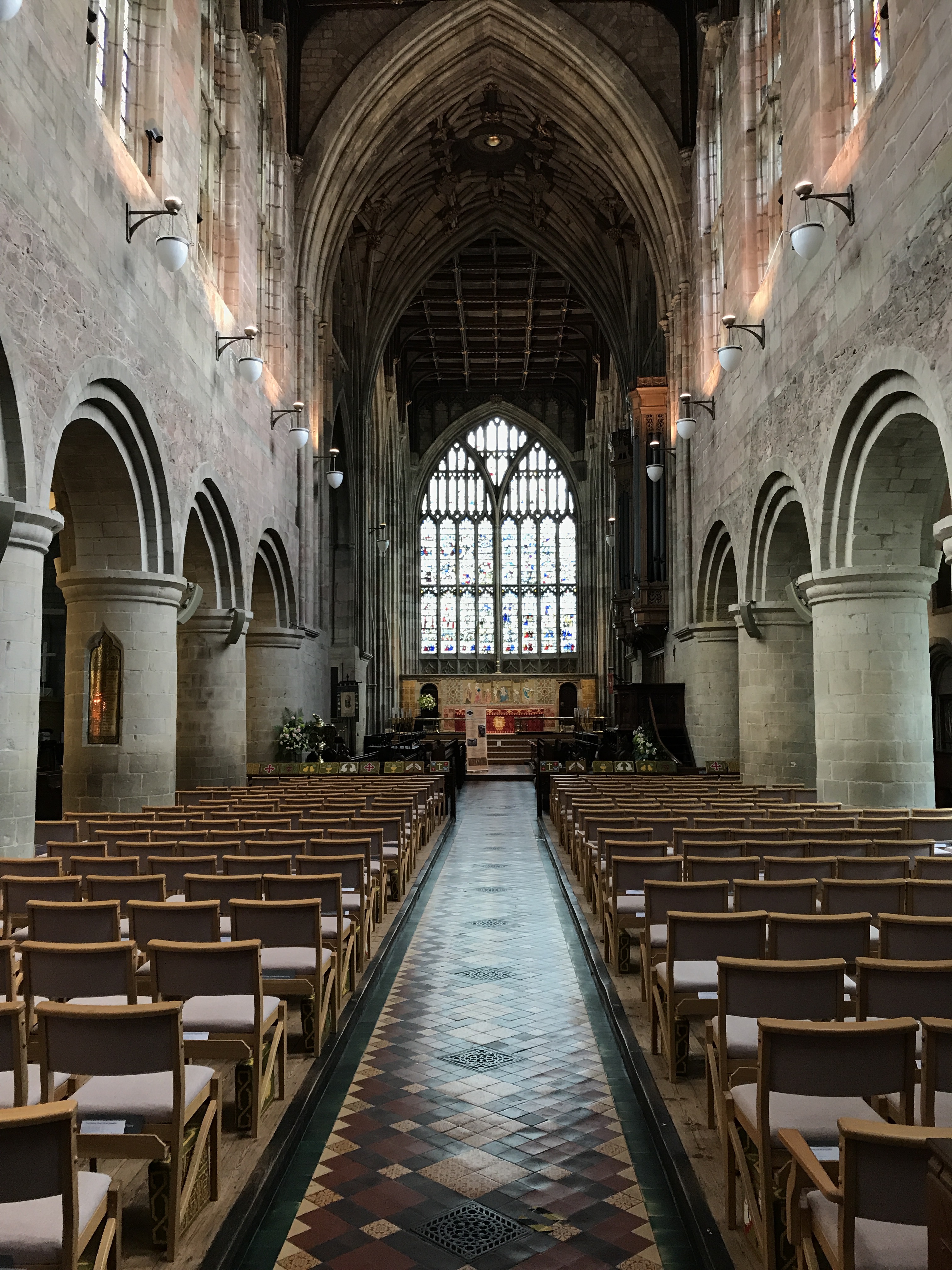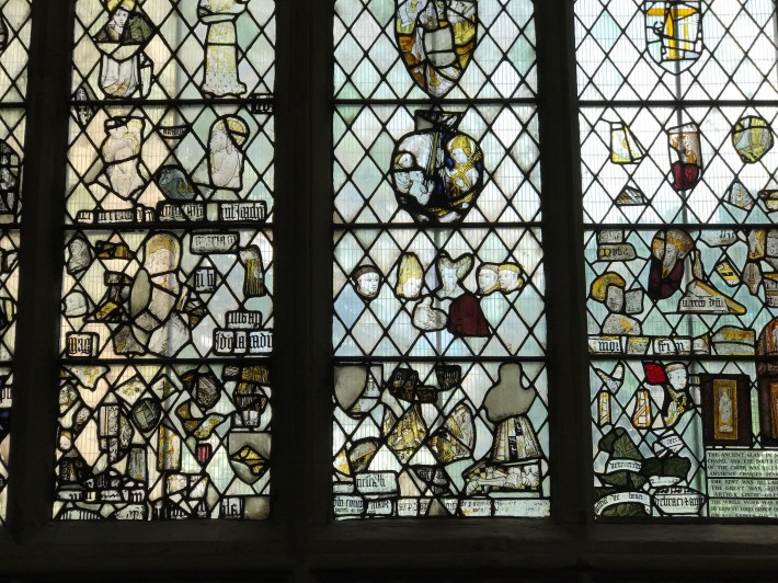 The most obvious survivors from that first building are the sturdy Norman pillars and arches of the nave. They look very different from the rest of the church which was rebuilt on a grand scale in the 1400s in the perpendicular gothic style. That redevelopment saw the insertion of the remarkable fifteenth century stained glass windows which still illuminate the church today.