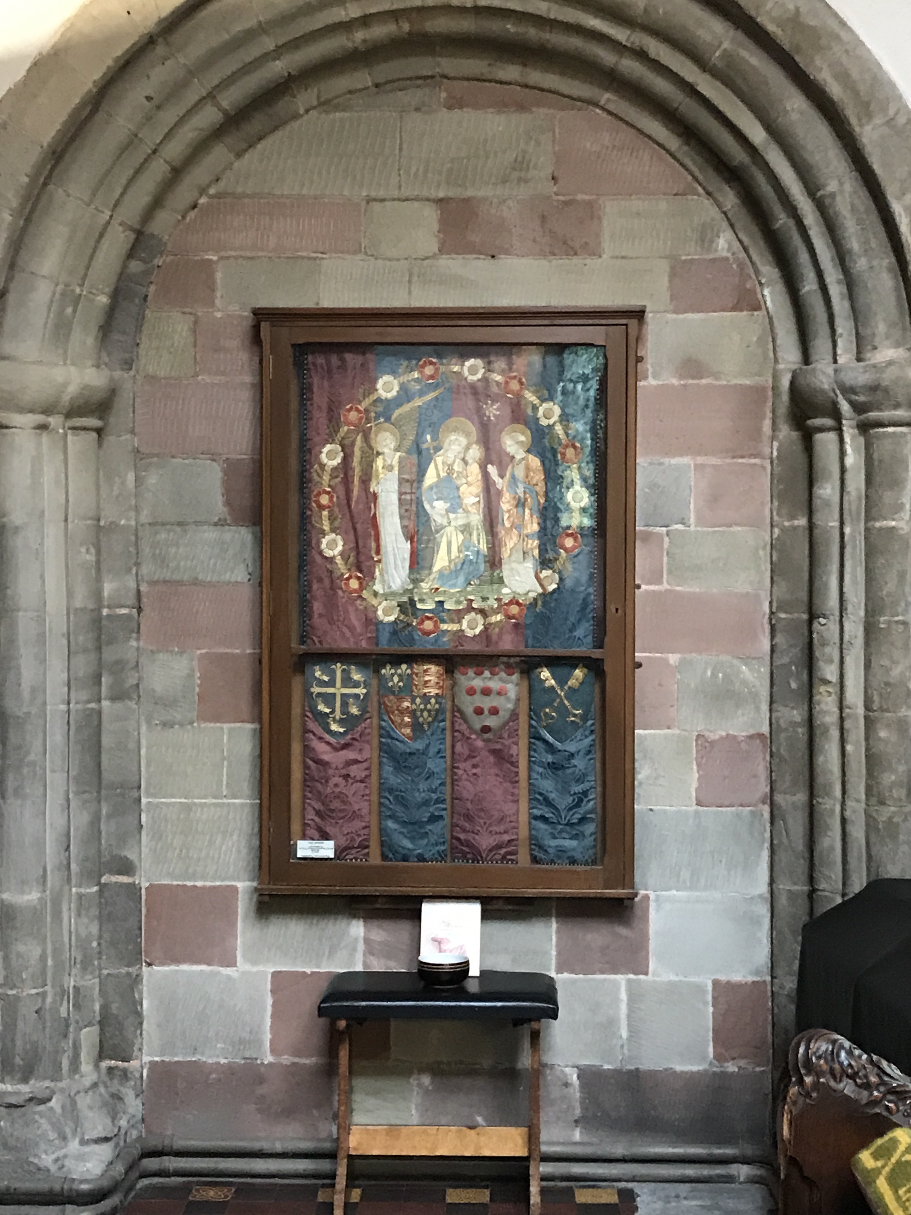 The chapel is dedicated to St Anne, the mother of the Virgin Mary. The East window is by Charles Kempe and was installed in 1897 to commemorate Queen Victoria’s Diamond Jubilee. It depicts the Crucifixion with particular reference to the landscape of Malvern and saints connected to the Priory’s history.