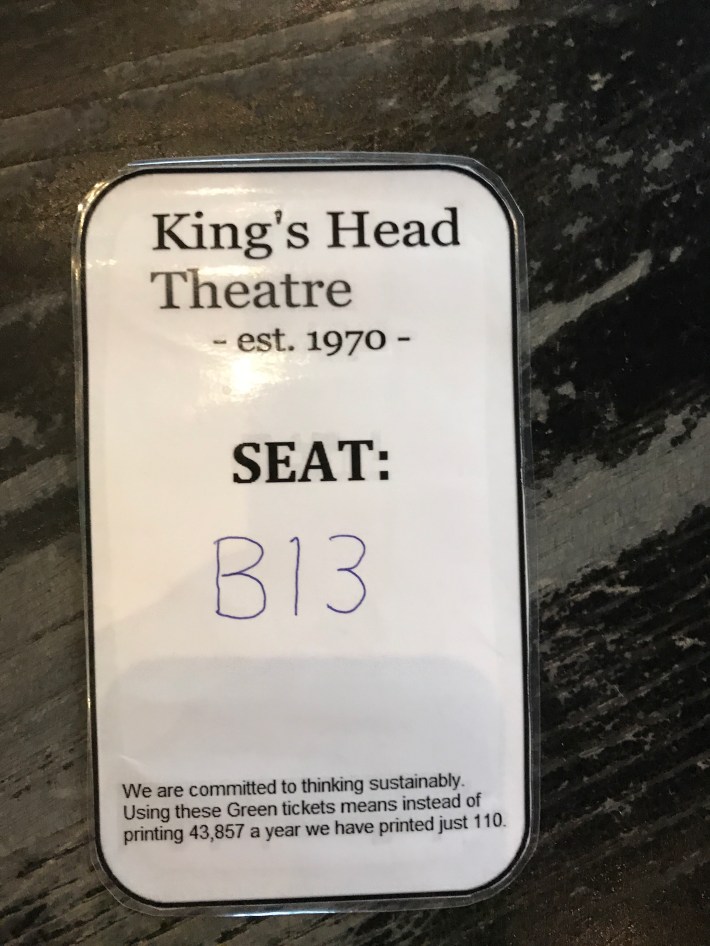 This evening’s performance was at the King’s Head Pub and Theatre in Islington.