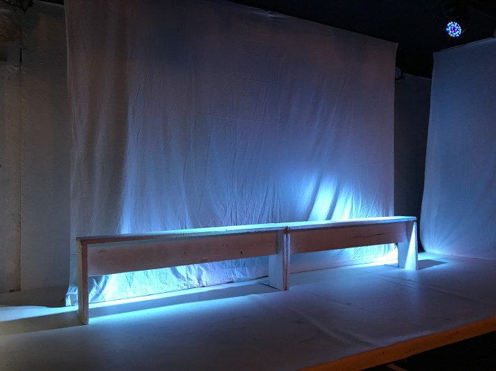 The theatre is actually a large room behind the bar. It would be hideously crowded if you squeezed 110 people in there. Thankfully there were only about 70.