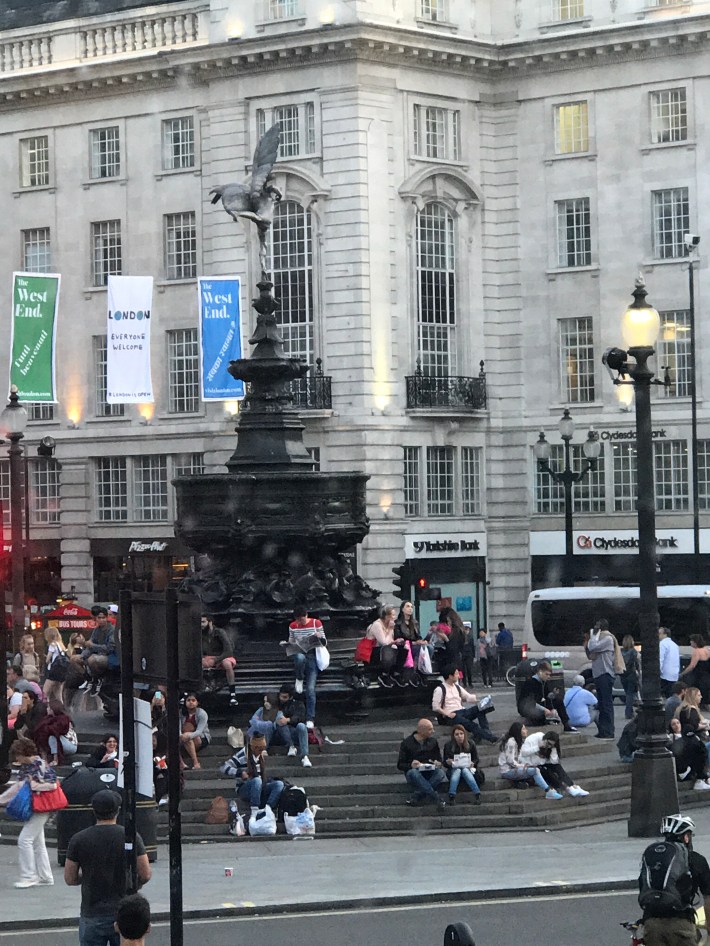 The bus stop was right outside St Mary’s Islington. It was still daylight and you don’t see much out the tube window, so I took the front seat upstairs on an electric double-decker.