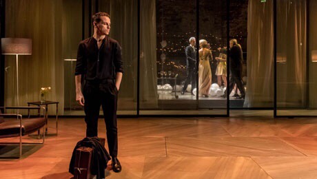 If you are expecting Elsinore Castle with battlements, mist-shrouded ghostly sightings, lots of armour and royal bling – this production is not for you. The king wears a dinner suit, the set looks like a modernist glass house by Philip Johnson or Mies van der Rohe, with upholstered furniture to match, and Hamlet is dressed in Melbourne’s favourite colour – black, comfy clothes if a tad over-disheveled.