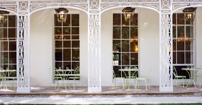 Dinner was served on the terrace in the balmy early evening. It could have been Savannah, but it is Exeter.