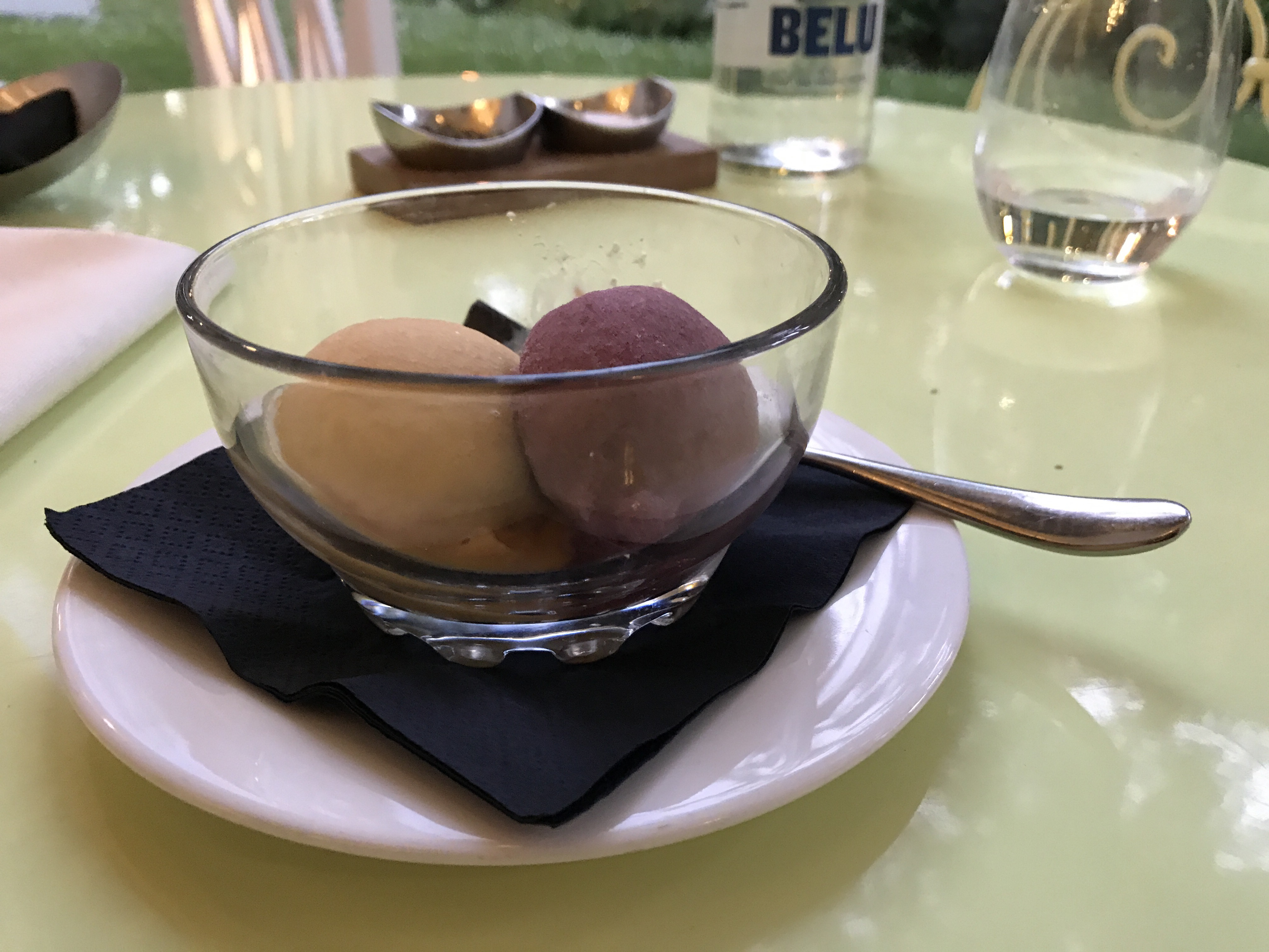 followed by banana and sangria sorbet.