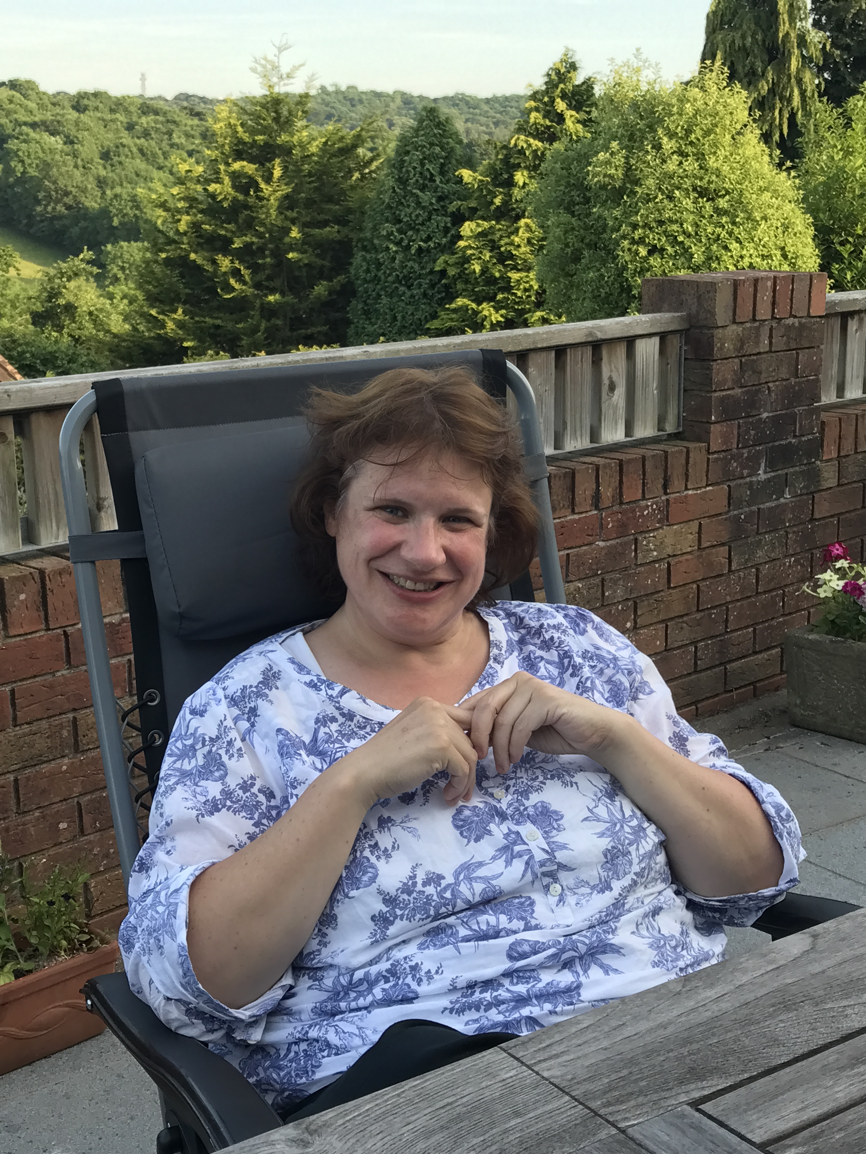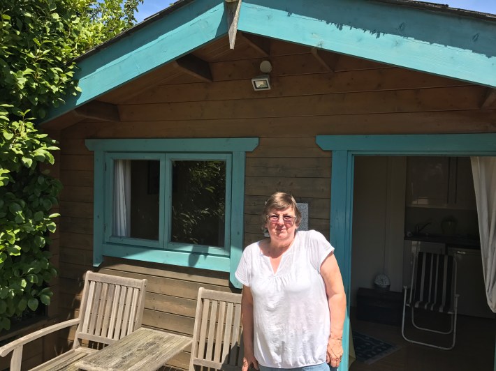 Here is Jan, standing outside their garden cabin, whilst giving me the guided tour of their new home. When I visited last, she lived in Bexhill-on-Sea,