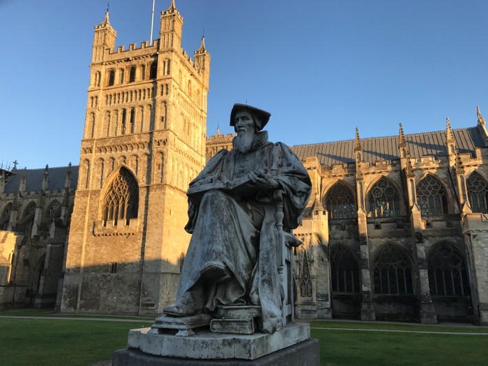 The Anglican Divine, Richard Hooker, famously described Anglicanism’s theological underpinning as being like a three-legged chair – scripture, reason, tradition. I note he isn’t sitting on a three-legged stool in this statue in the grounds of Exeter Cathedral – a building which is one of the finest examples of Gothic architecture.