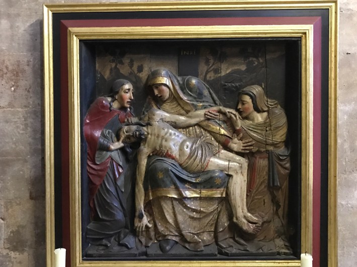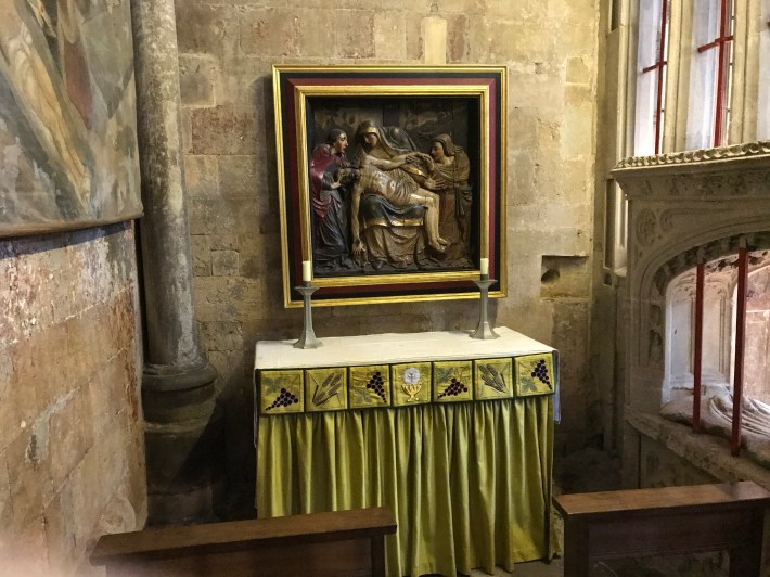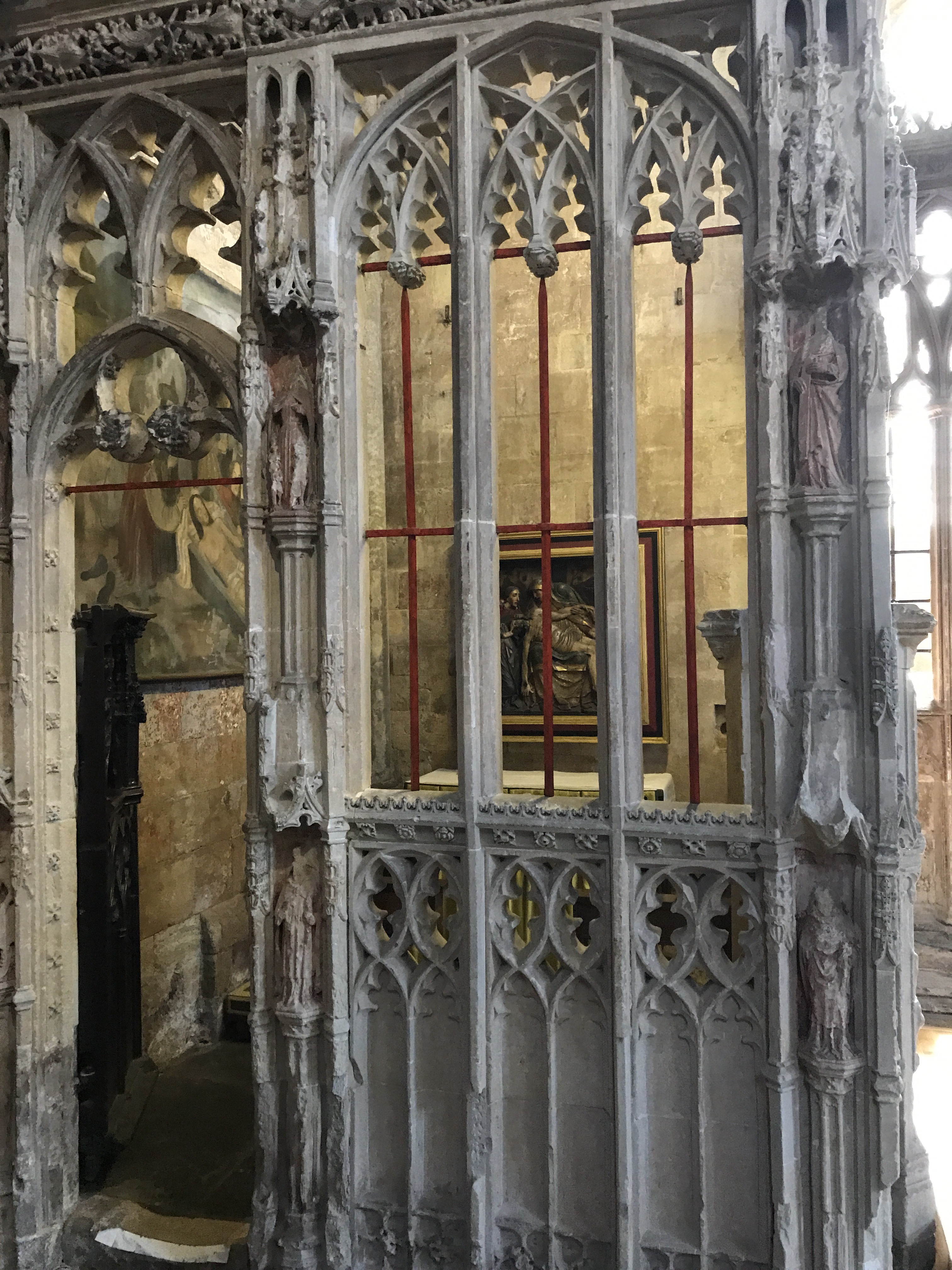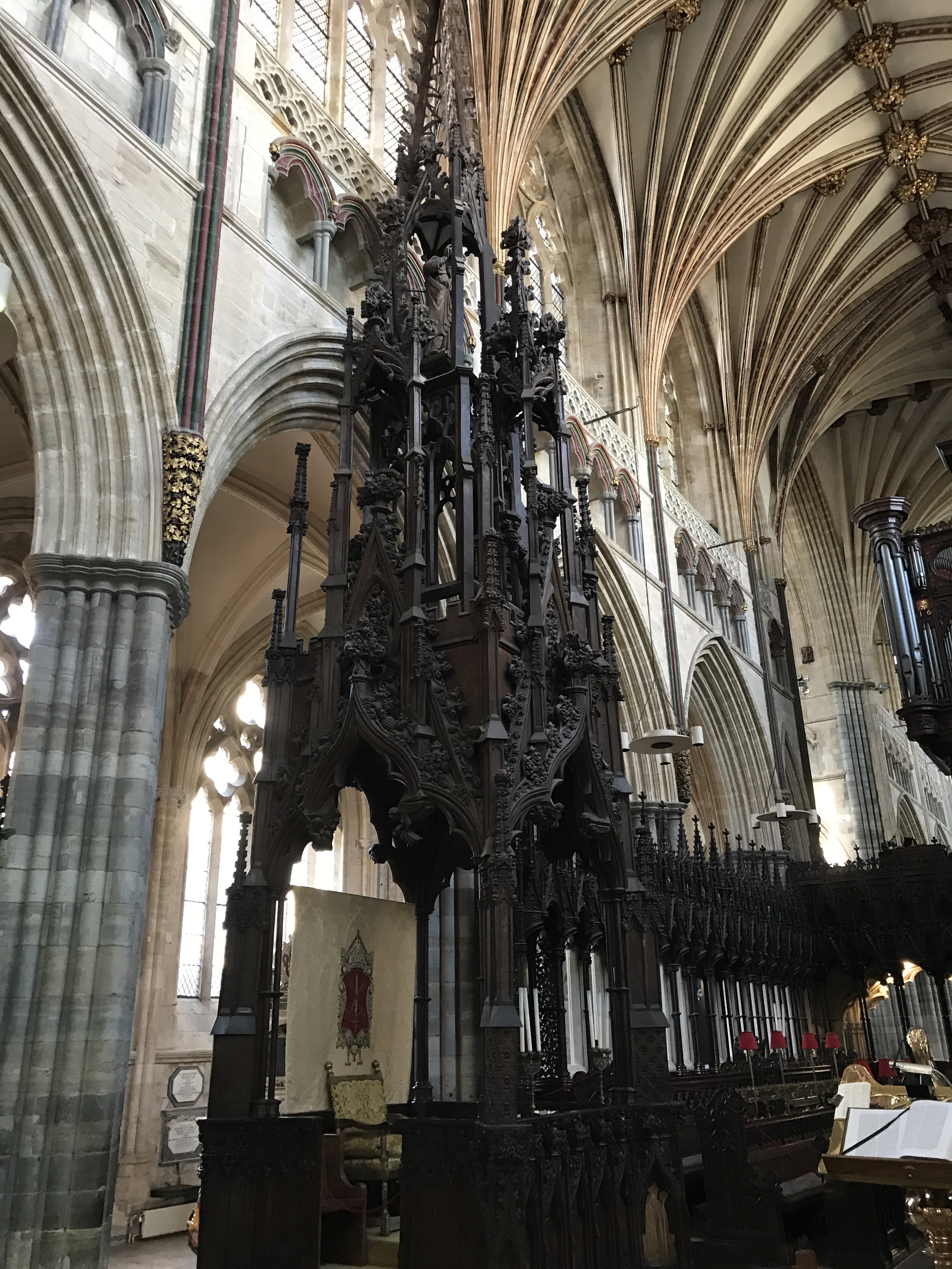 The spectacular bishop’s throne has a canopy that is 18 metres tall. The canopy was made between 1312-1316 from local Devon oak, locked together by wooden pegs.