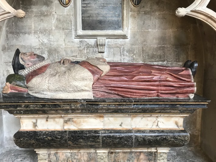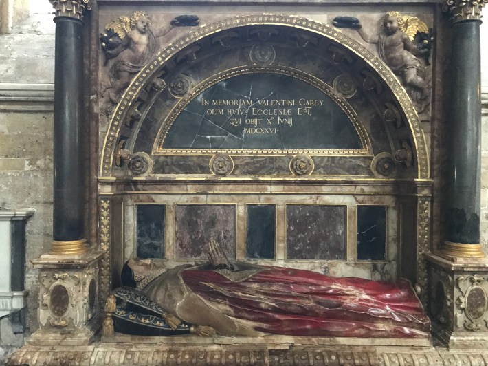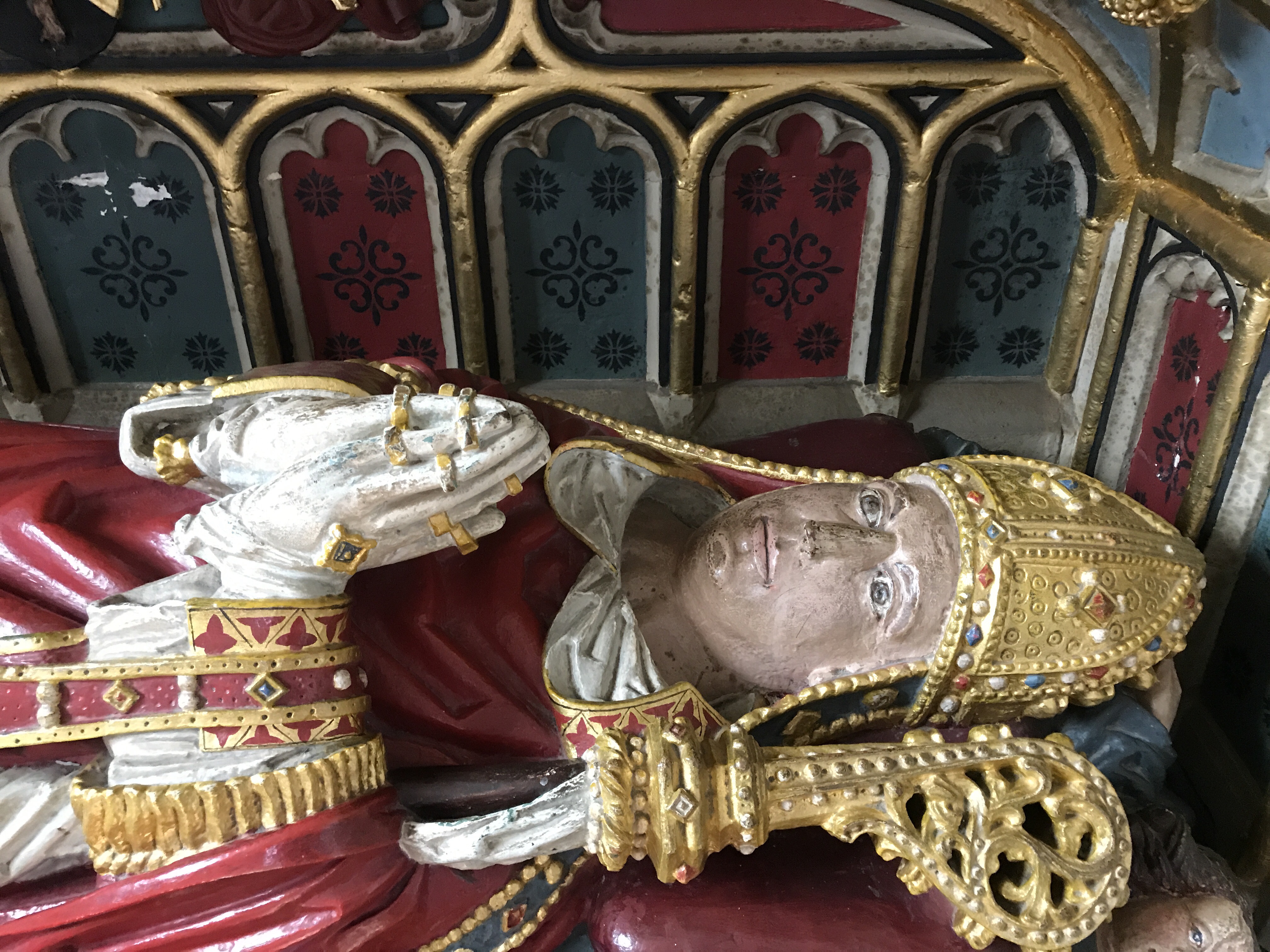 Hugh Oldham, Bishop of Exeter 1504-1519 (below) was clearly the king of bling in his day, never saw a ring he didn’t like but managed to establish Manchester Grammar School and was co-founder of Corpus Christi College, Oxford.