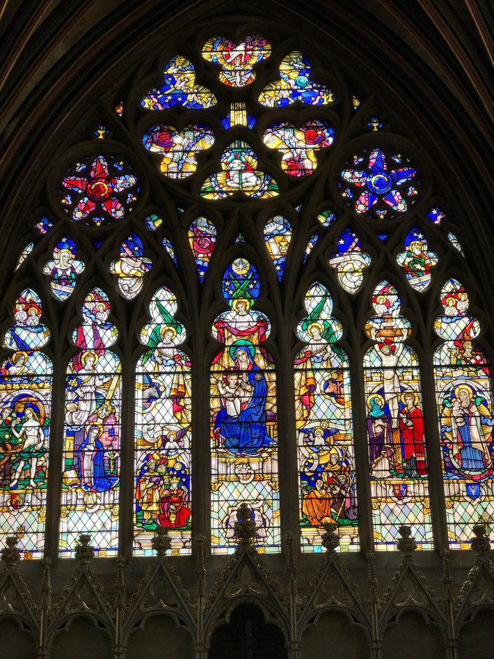 The Cathedral’s tierceron vaulted ceiling spans 96 metres and is the longest medieval stone vault in the world. The ornate rounded bosses act as keystones, locking the vaults in place. The Cathedral has 400 bosses, carved with a variety of Gothic images including plants, animals, heads, figures ,and coats of arms.