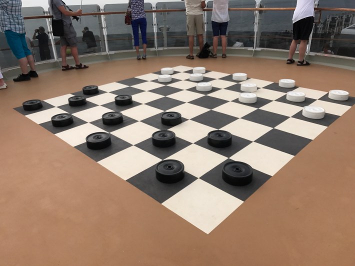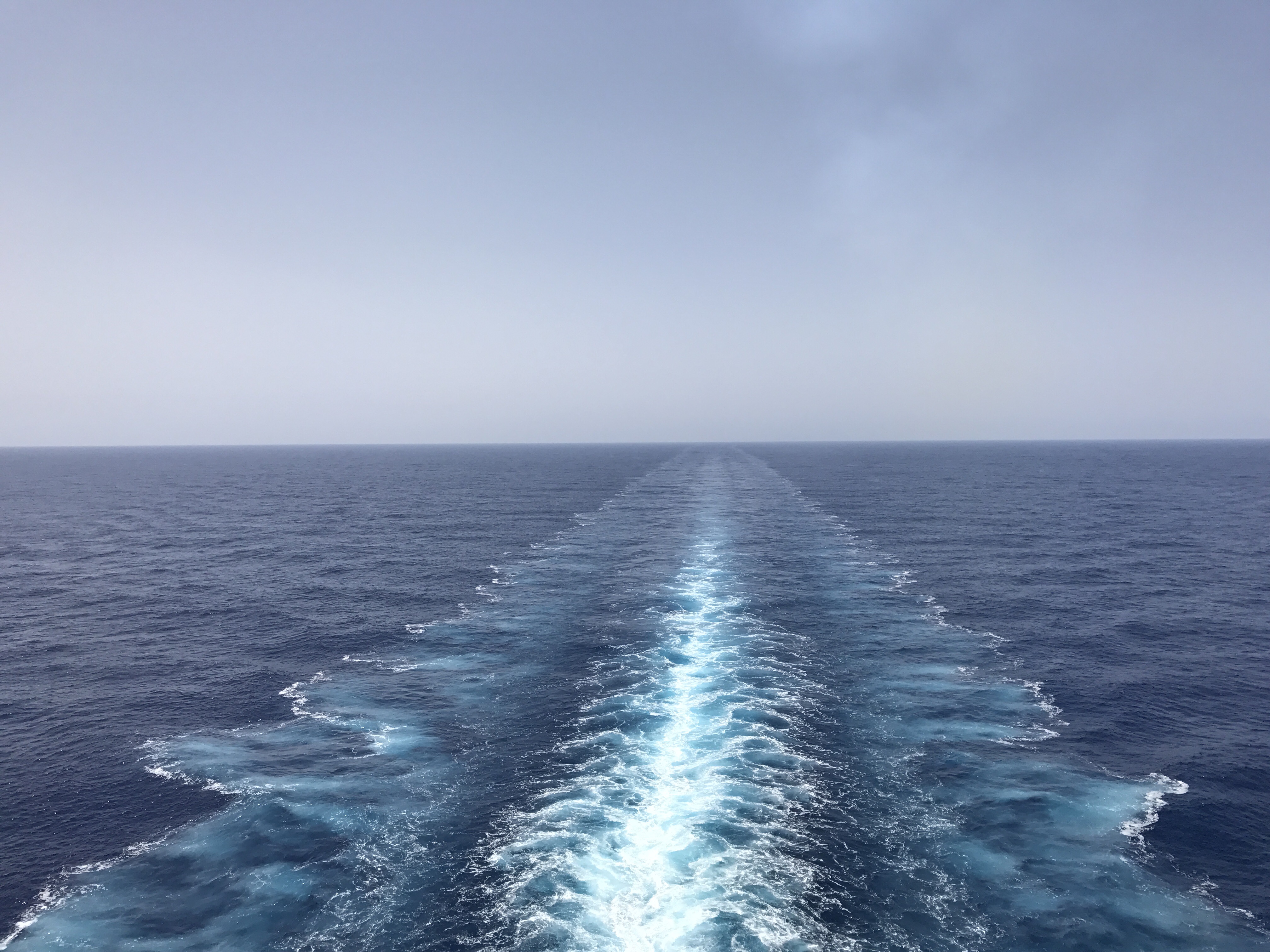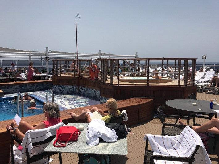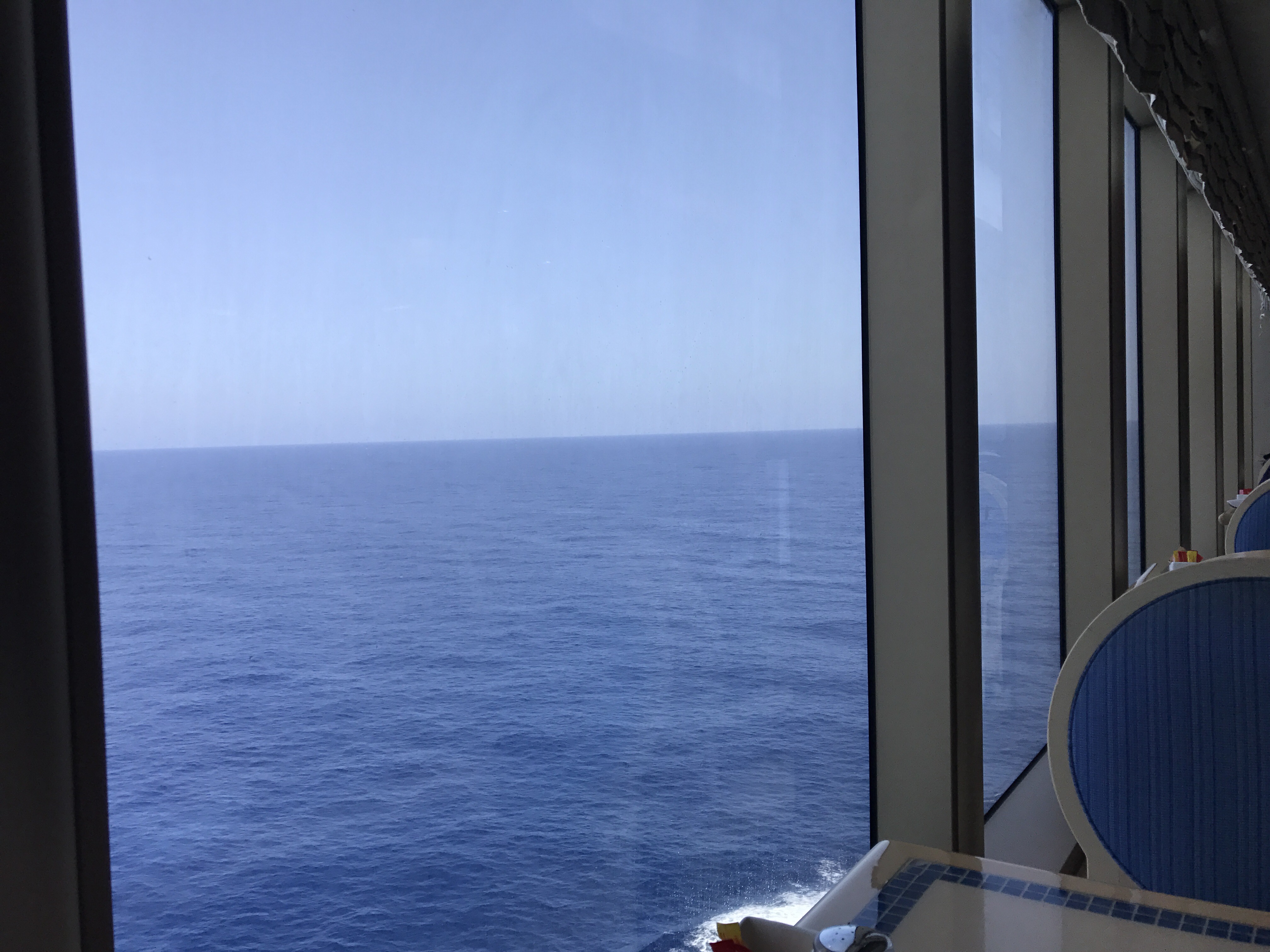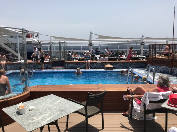 Breakfast in the Lido buffet where I snagged a window seat, though on the sunny starboard side so I was a bit hot. I used my book as a place-marker and I was able to keep my seat easily.