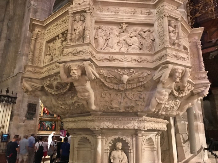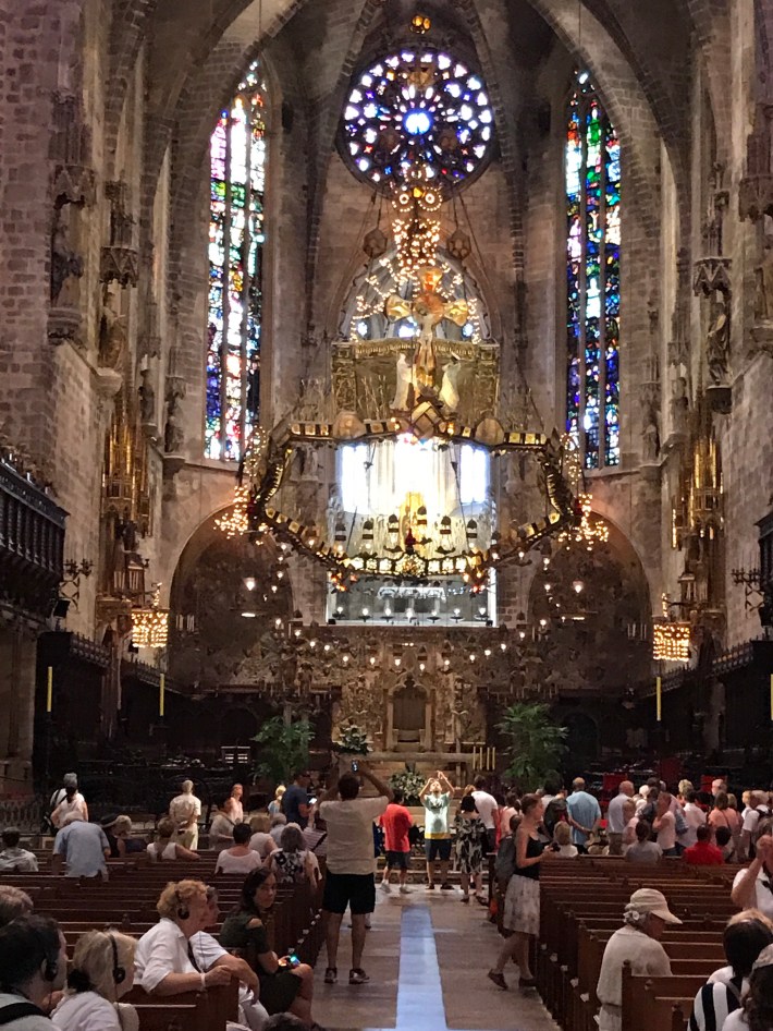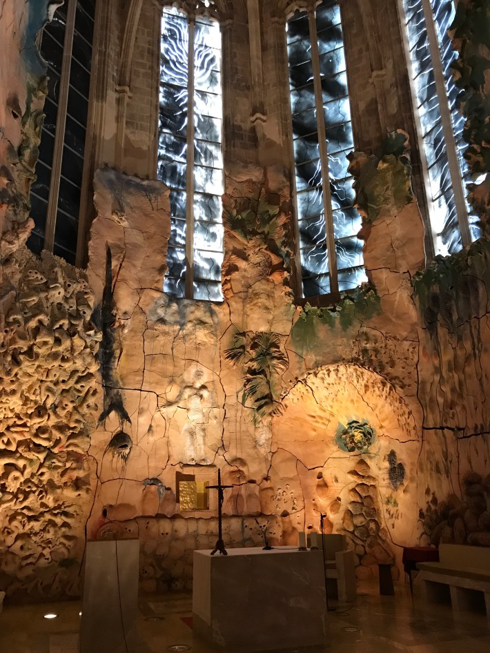 Antonio Gaudi spent 10 years in Palma making alterations to the cathedral’s sense of light and space. He designed the baldacchino above the nave altar, the further altar being a chapel) from a range of objects including paper mâché, dried pumpkin shins, lots of lights.