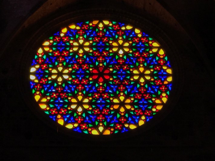 Weather permitting, twice a year (2 February and 11 November) the sun shines through the  major rose window (the largest in the world) in the east onto and under the minor rose window in the west wall, creating the figure 8.