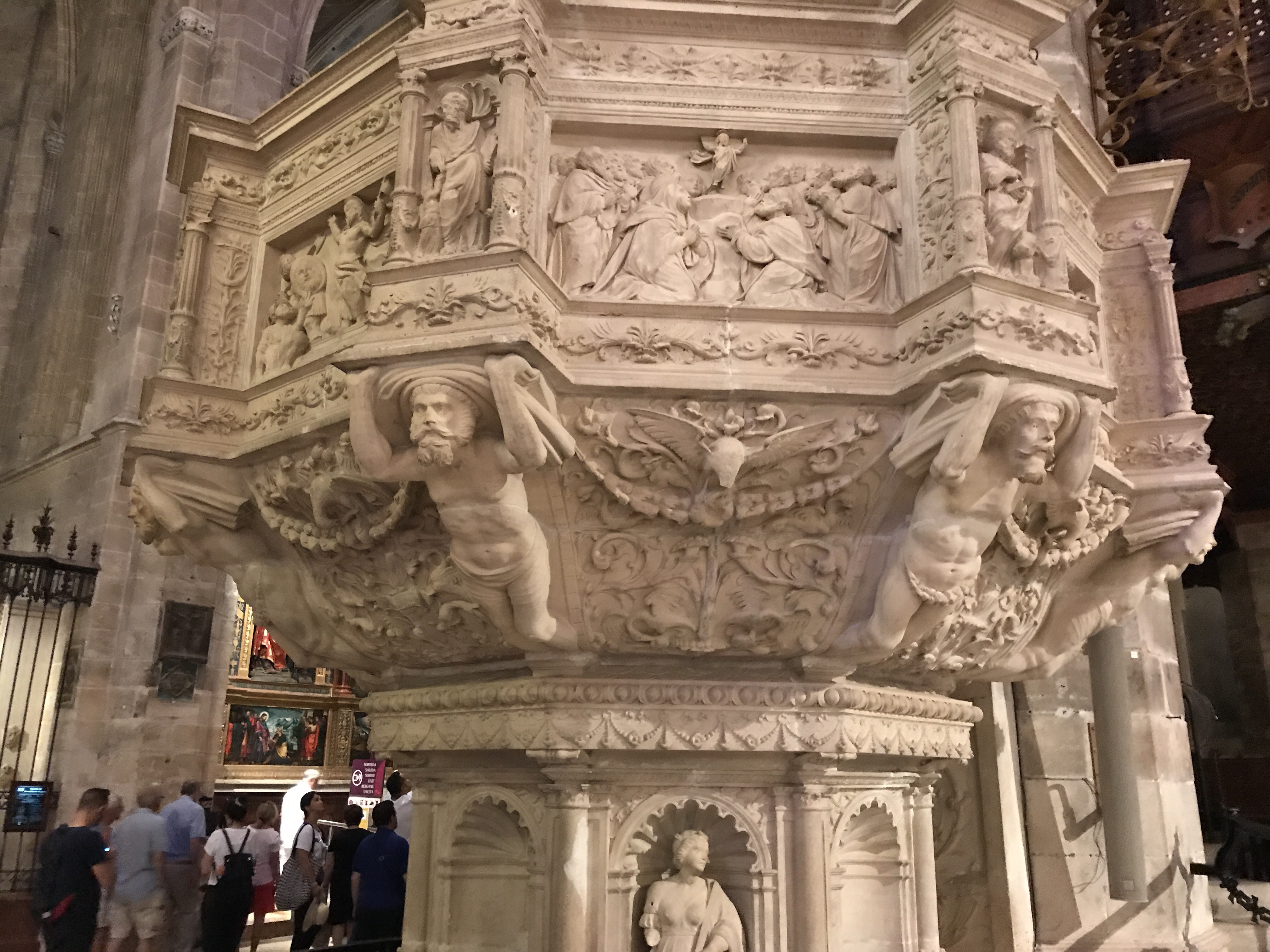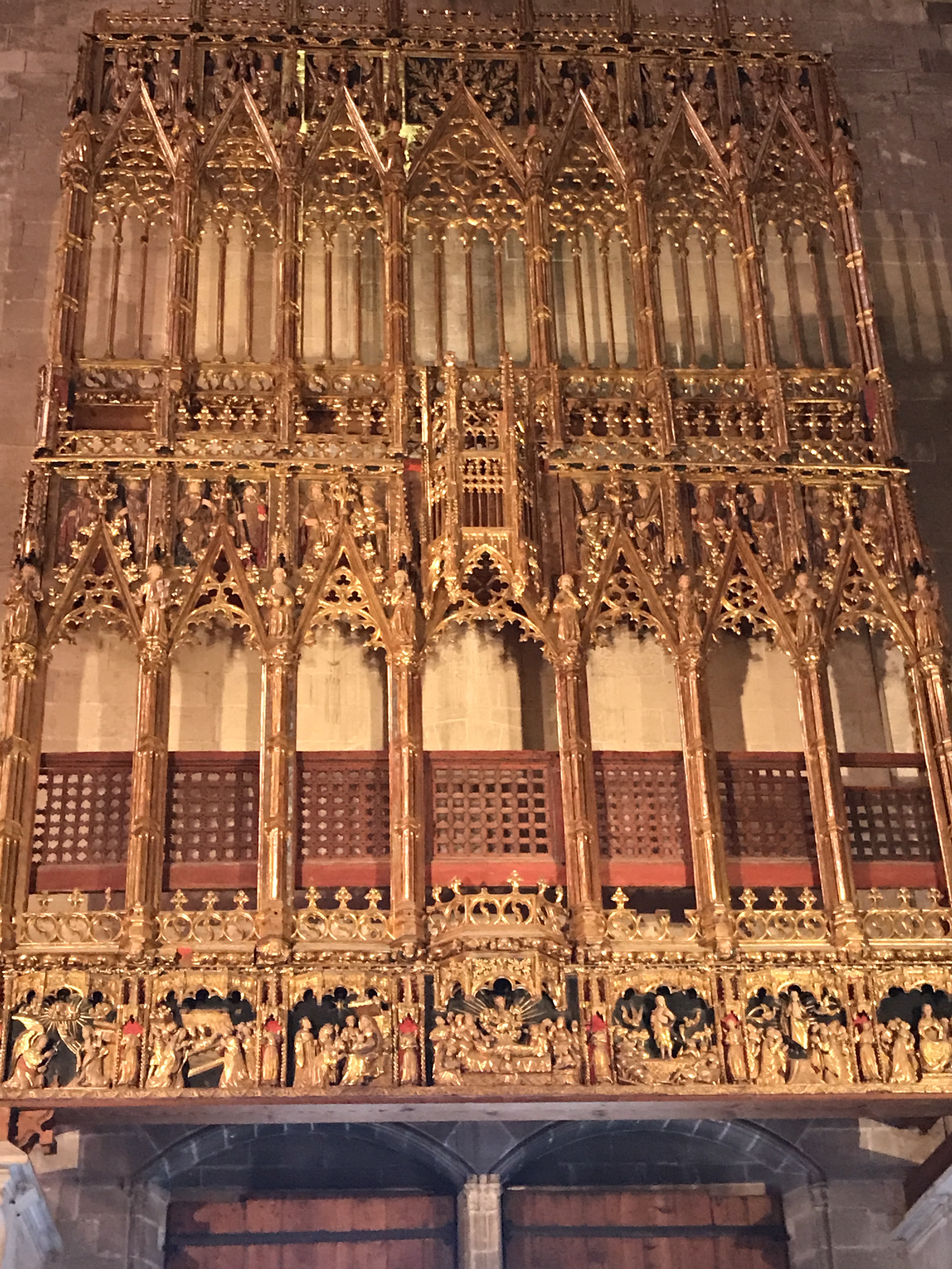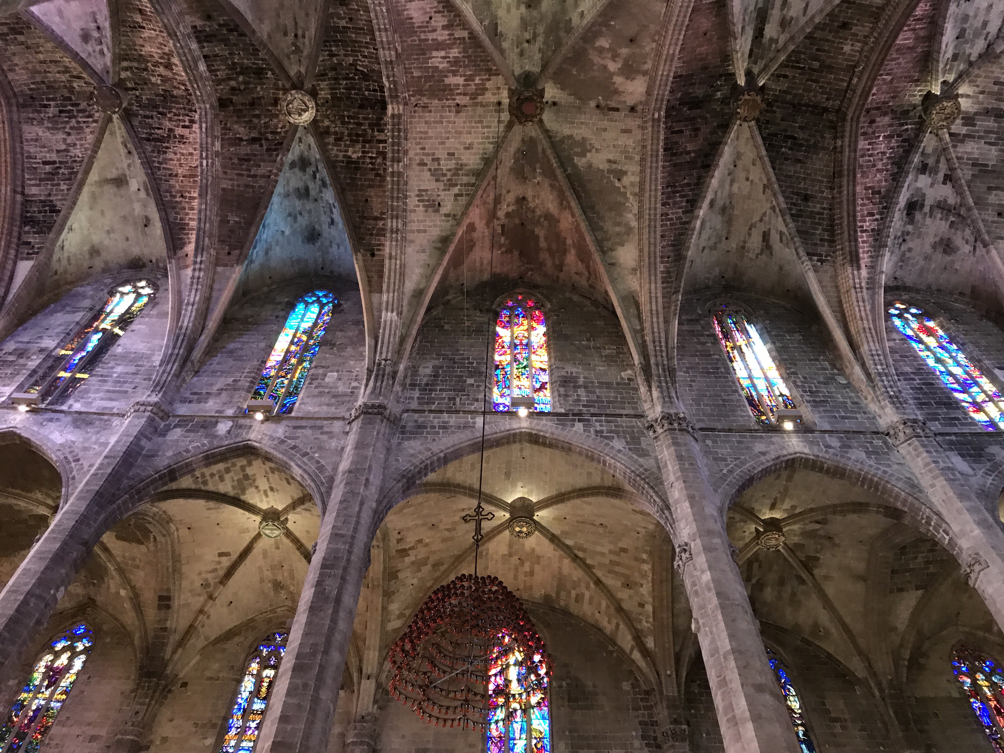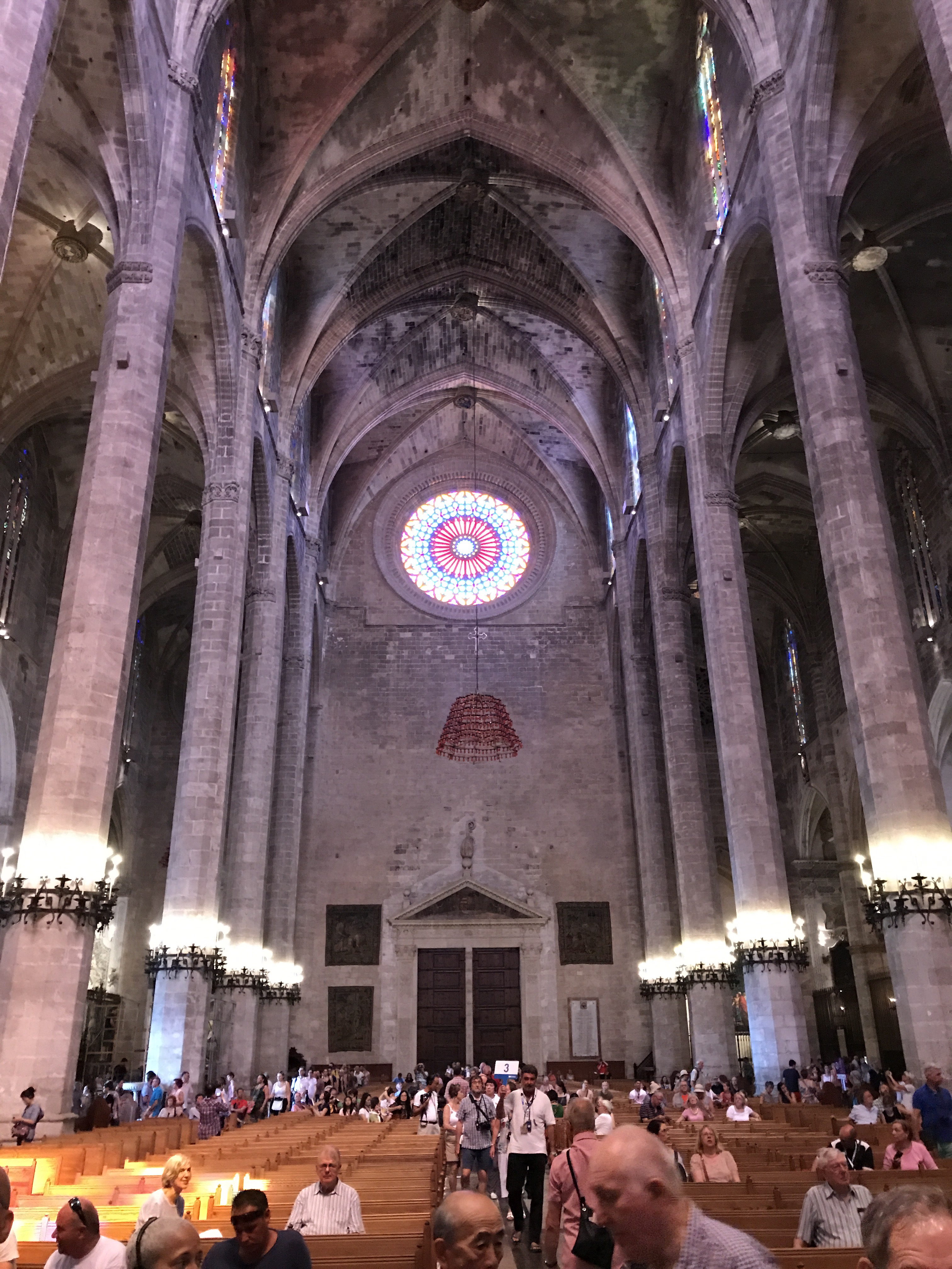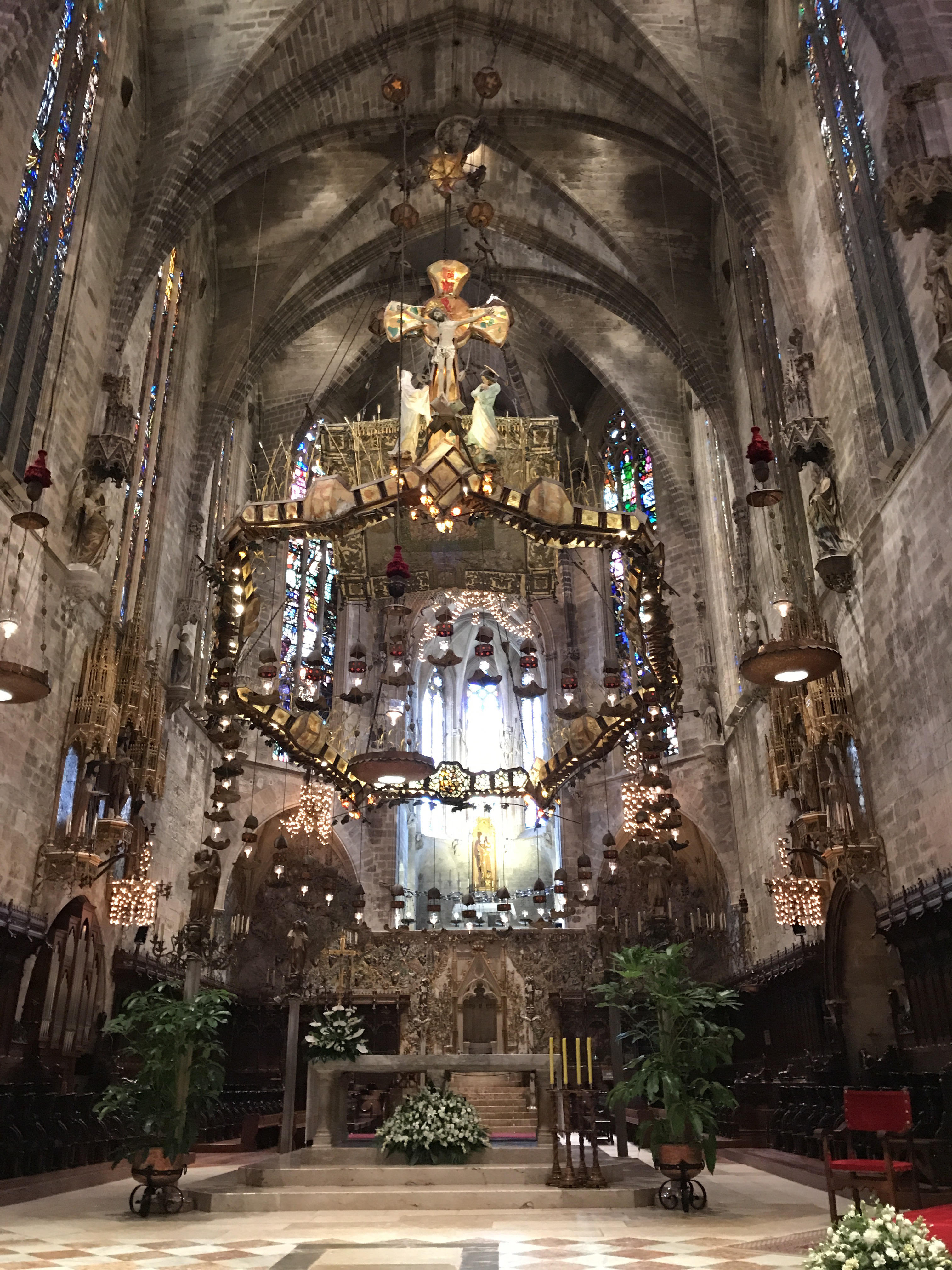 Antonio Gaudi spent 10 years in Palma making alterations to the cathedral’s sense of light and space. He designed the baldacchino above the nave altar, the further altar being a chapel) from a range of objects including paper mâché, dried pumpkin shins, lots of lights.