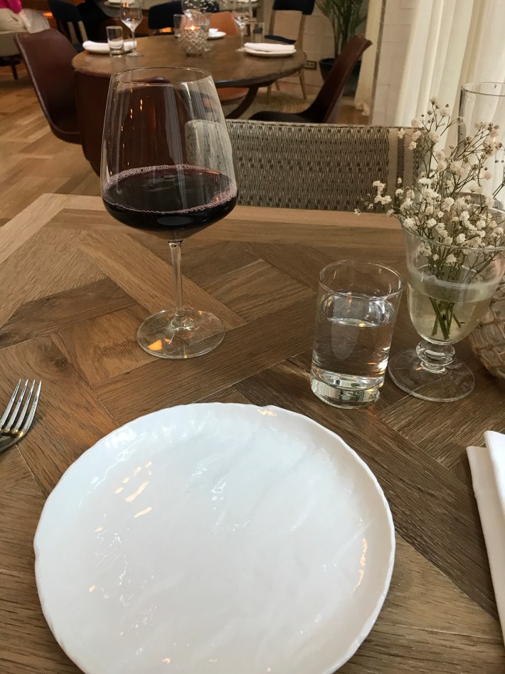 In my room was a card from a nearby restaurant which the hotel were recommending for dinner. So off I went, down the glass elevator, only to discover that the Hotel Pulitzer has its own new restaurant which was having an opening sale. Who can walk past a sale, I say. Dinner is like ‘gift-with-purchase’. So instead of going out, I decided to eat in.
