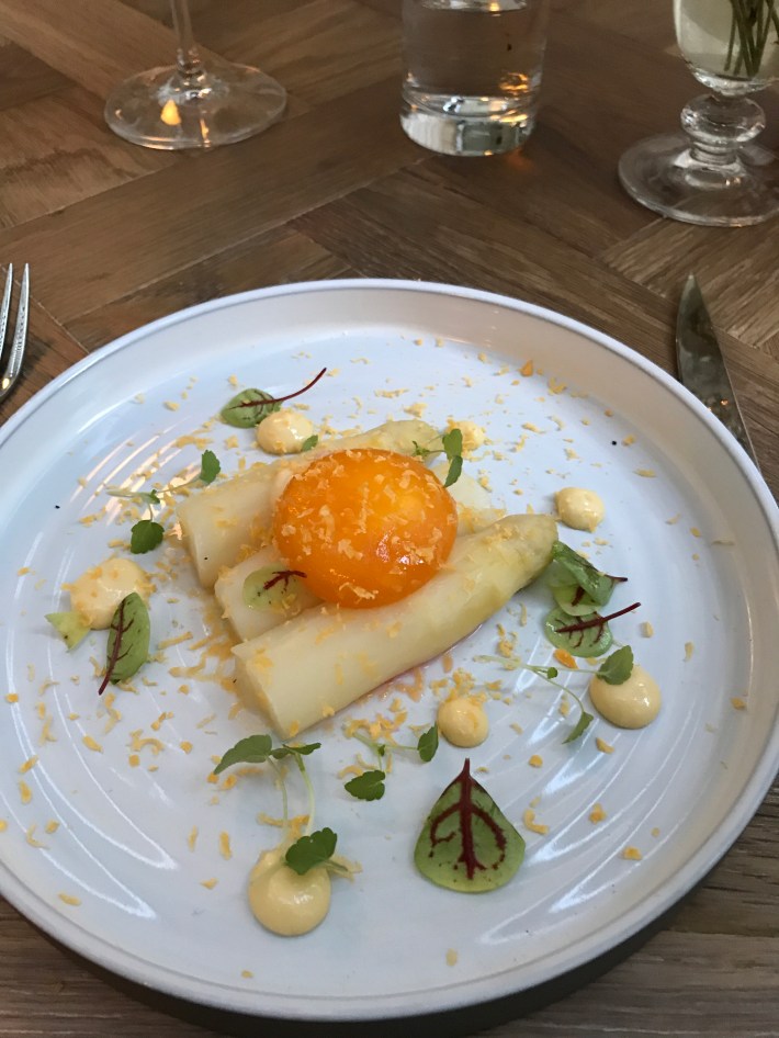 Then I was presented with what was simply described as ‘white asparagus, pine nuts, egg yolk.