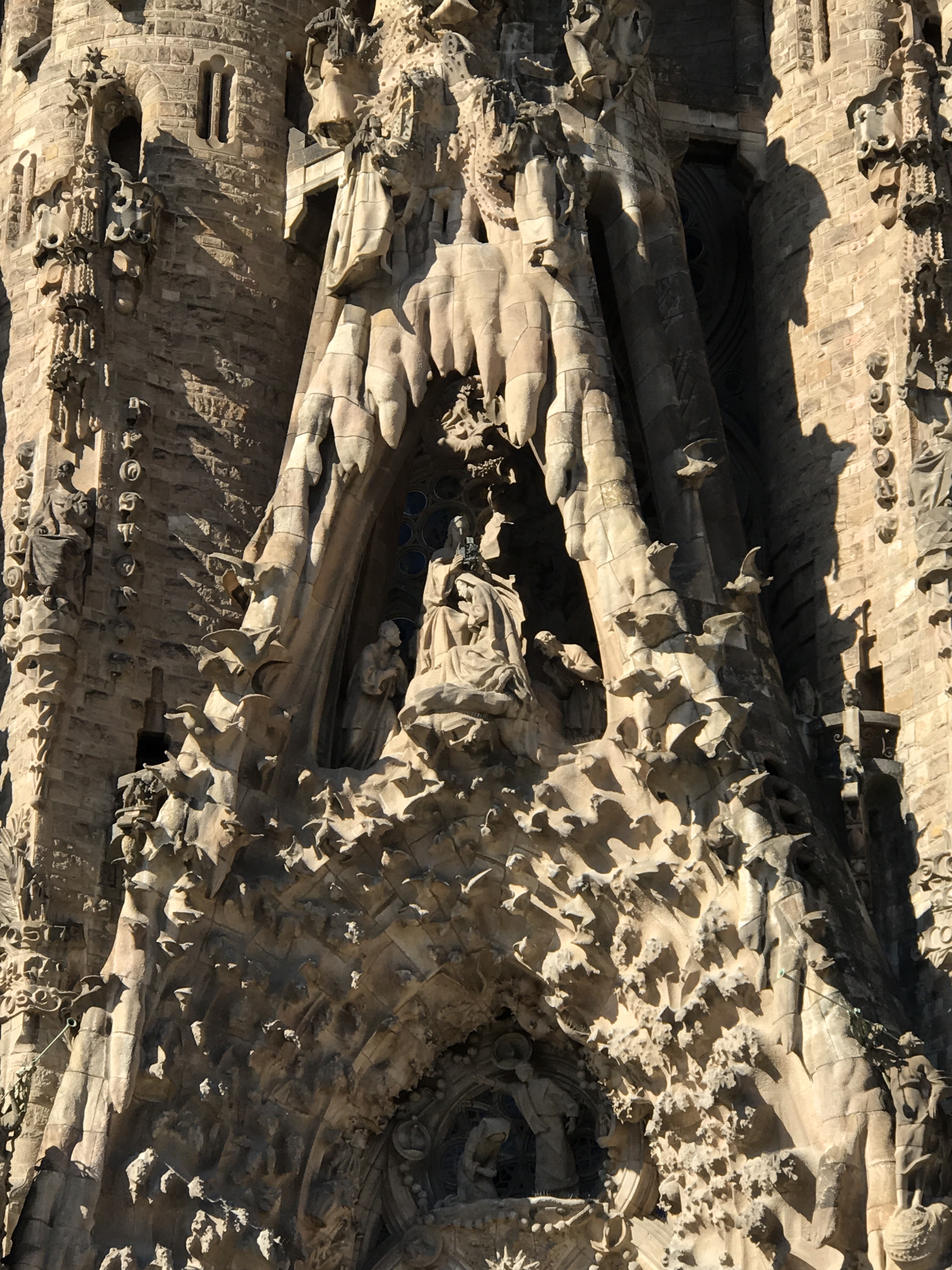 Much of his time was spent in the building of the northern side, the Nativity Façade, by which you enter the basilica. This centre section clearly looks older than much of the rest of the construction to date.