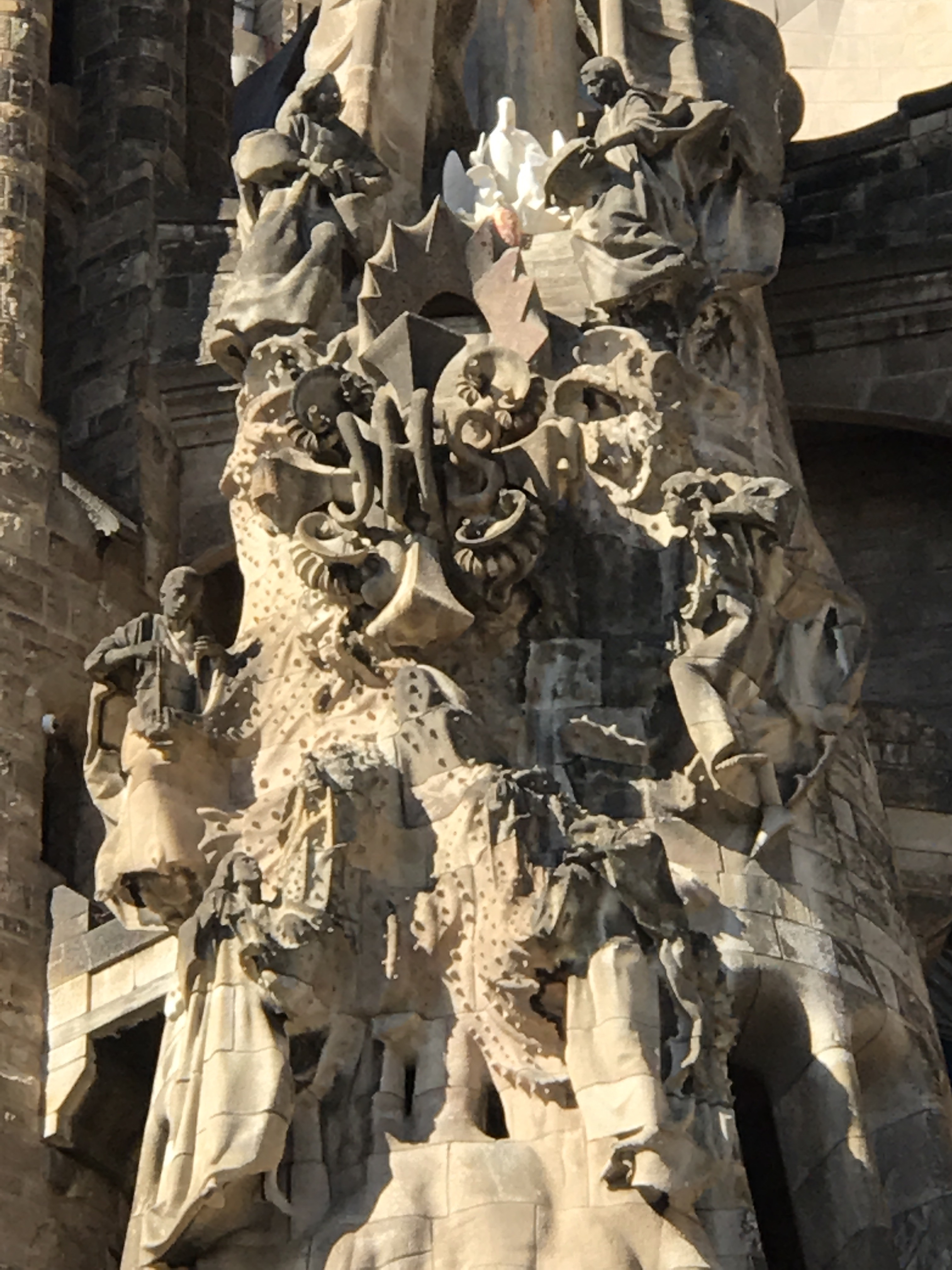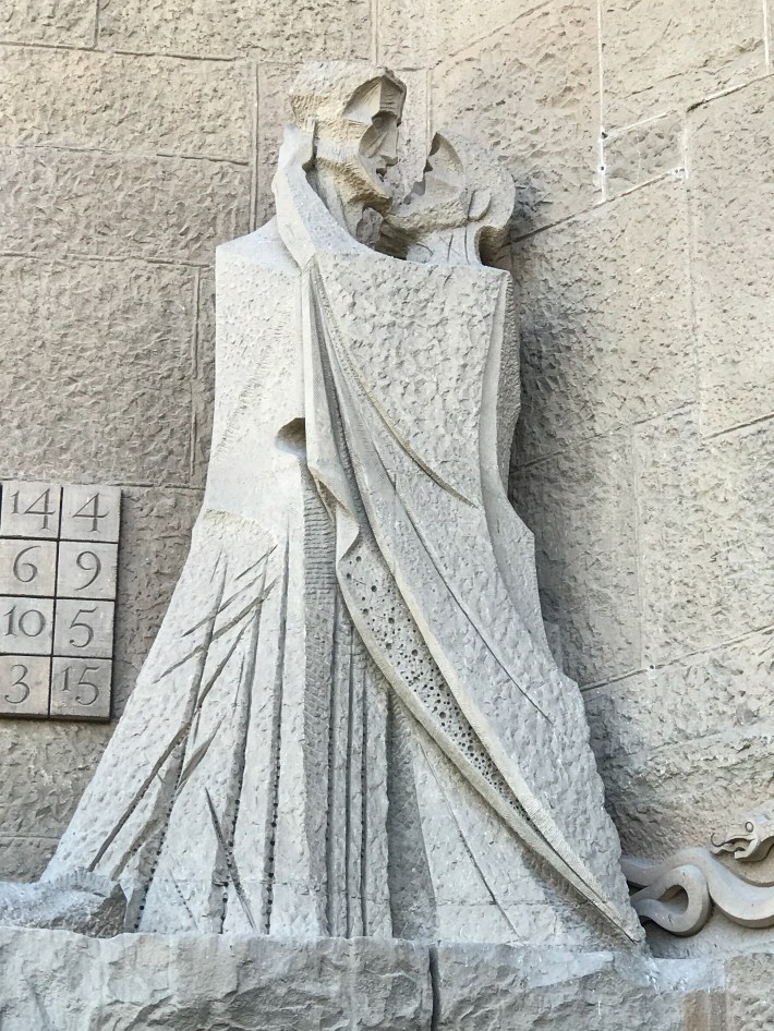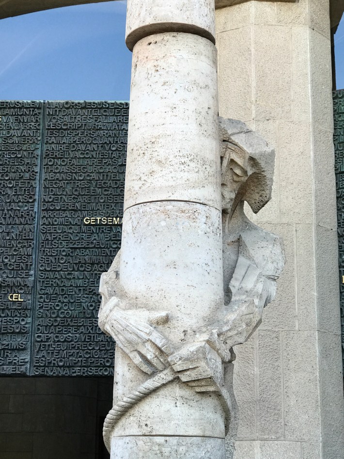 The southern side, the Passion Fasçade (or Darth Vader wall as I saw it) was much newer, with whiter stone, less elaborate decoration no doubt befitting the subject matter. Here, the figures are more modernist, angular, much less realism, but the stories stand out from their austere background. I admired this aspect of the building the most.