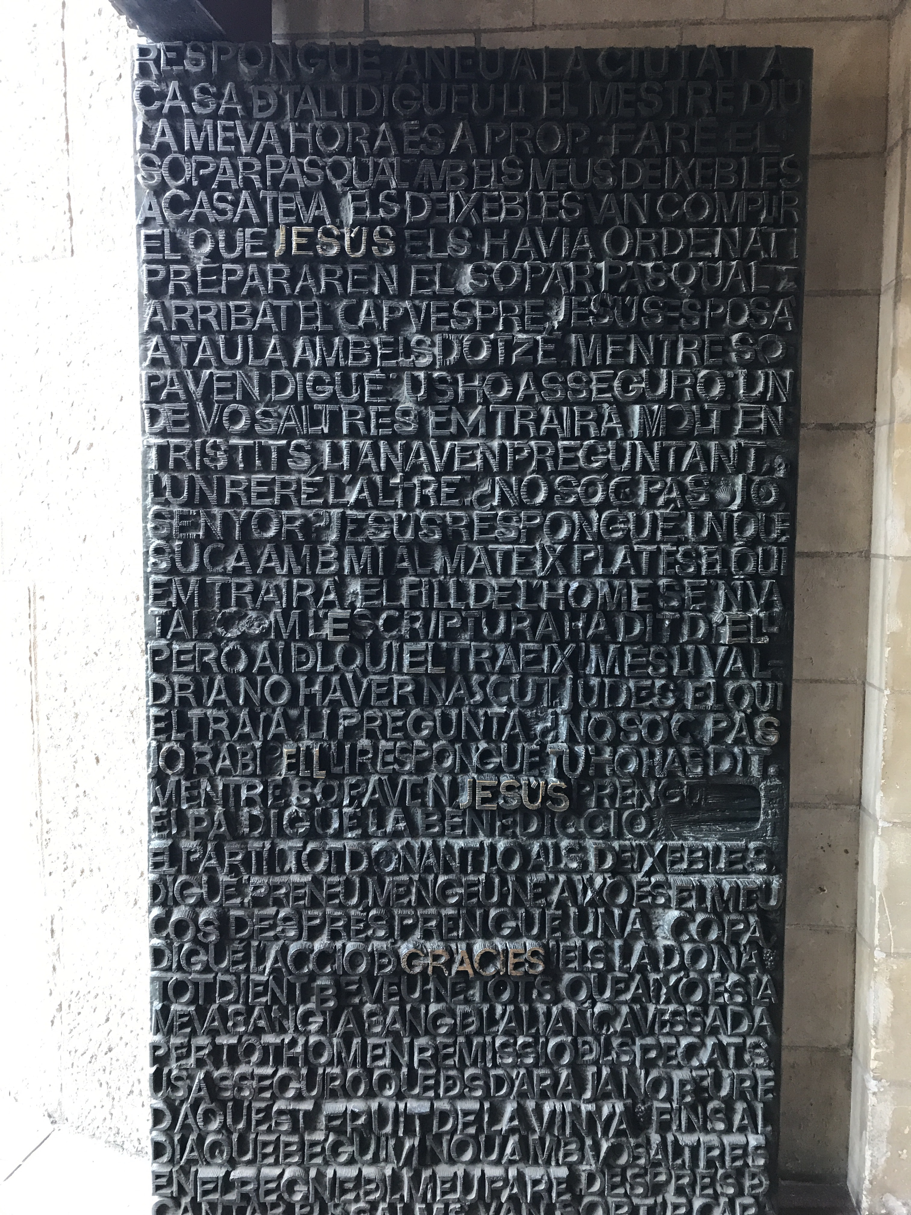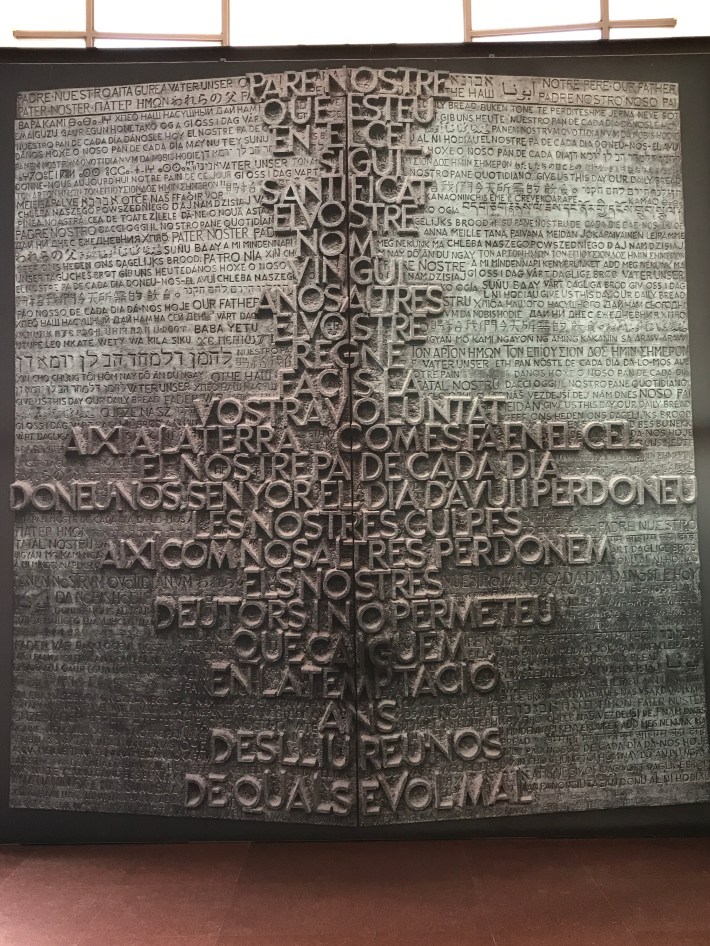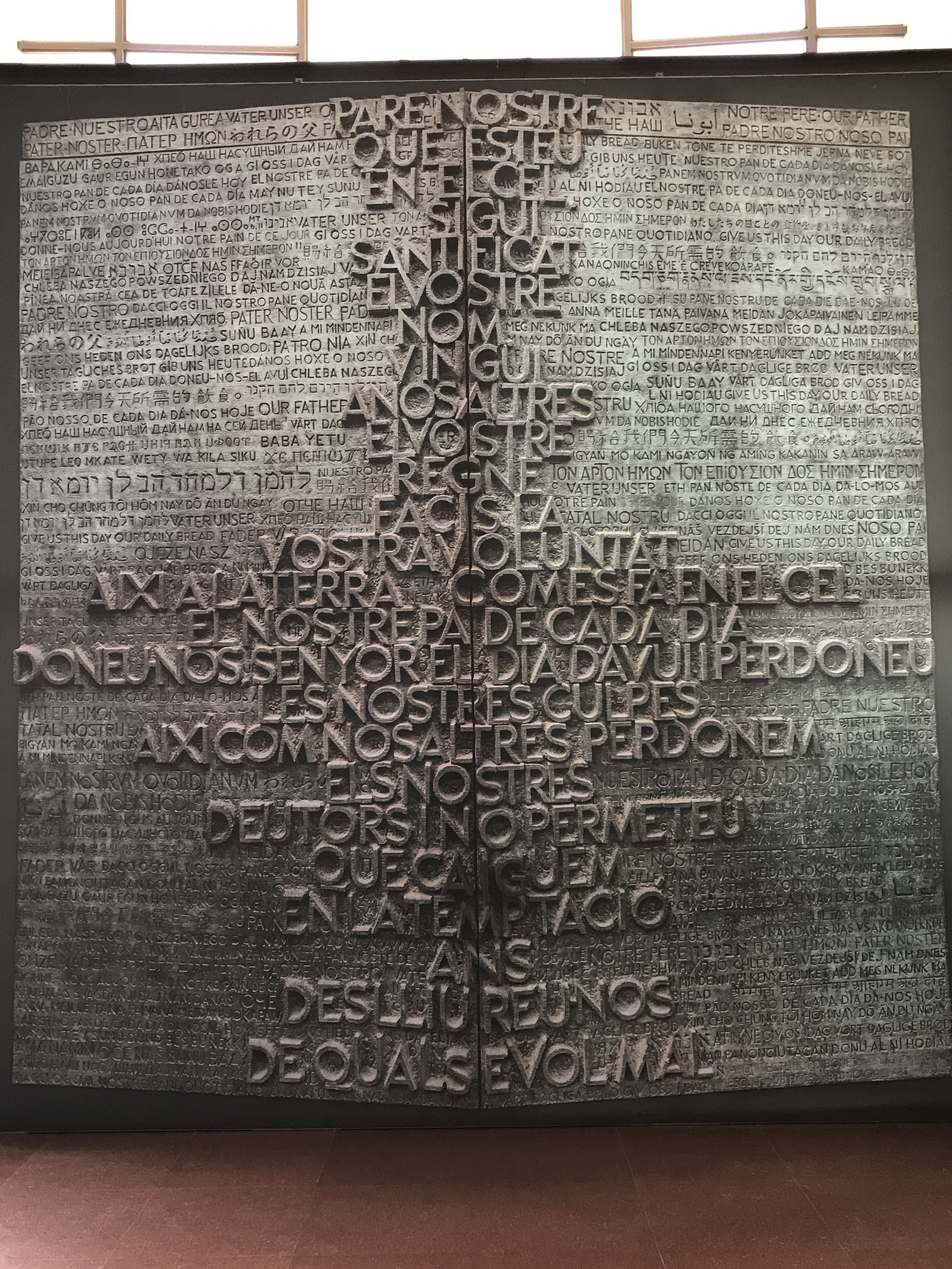 The Glory Doors in draft, highlighting the Lord’s Prayer in Catalan, surrounded by the prayer in 50 languages as an expression of the brotherhood between cultures.