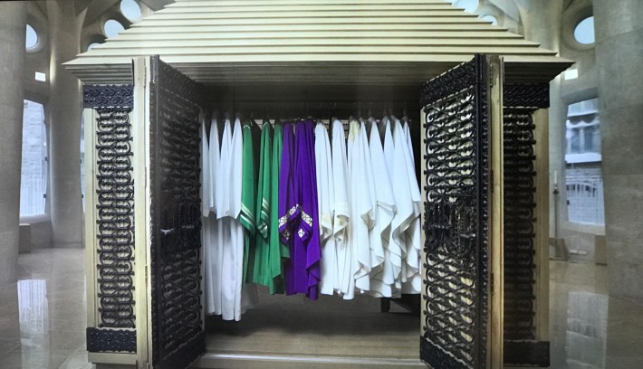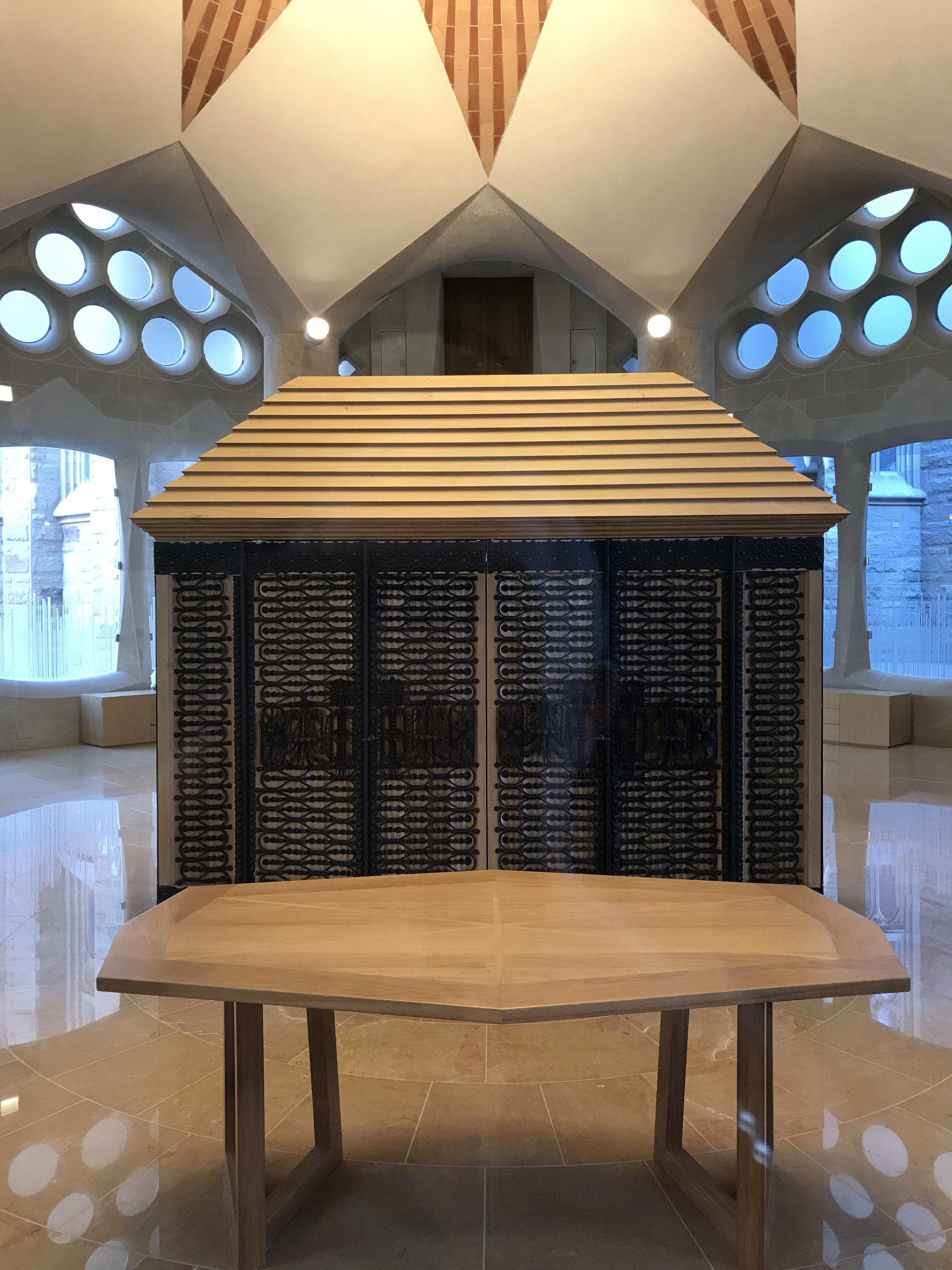 And a baldacchino, rehearsed by Gaudi in his renovation of the cathedral in Palma de Mallorca.