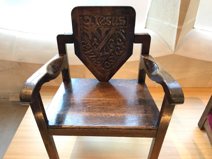 While he works well with stone, iron and broken ceramics, Gaudi’s wooden furniture looks out of character and uncomfortable.
