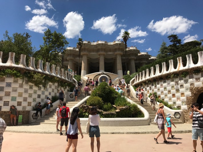 In the afternoon of my day tour we visited two further Gaudi institutions. The original idea of Park Guell was to create a private residential garden city for wealthy Barcelona residents (developed by th Guell family), who could then live in Park Guell on El Carmel hill above the smoke and noise of Barcelona’s city and with lovely city views.