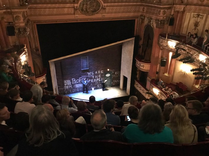 It is a nice theatre, with a domed ceiling with a chandelier set in its centre. You can’t quite see the chandelier in the photo above, but I was looking right at it – because somehow I was sitting in the Grand Circle. – total nosebleed seat. Not the worst seats, those behind me looked diretly at a wall and could only look downwards. At least I had the chandelier . I liked the chandelier better than the play.