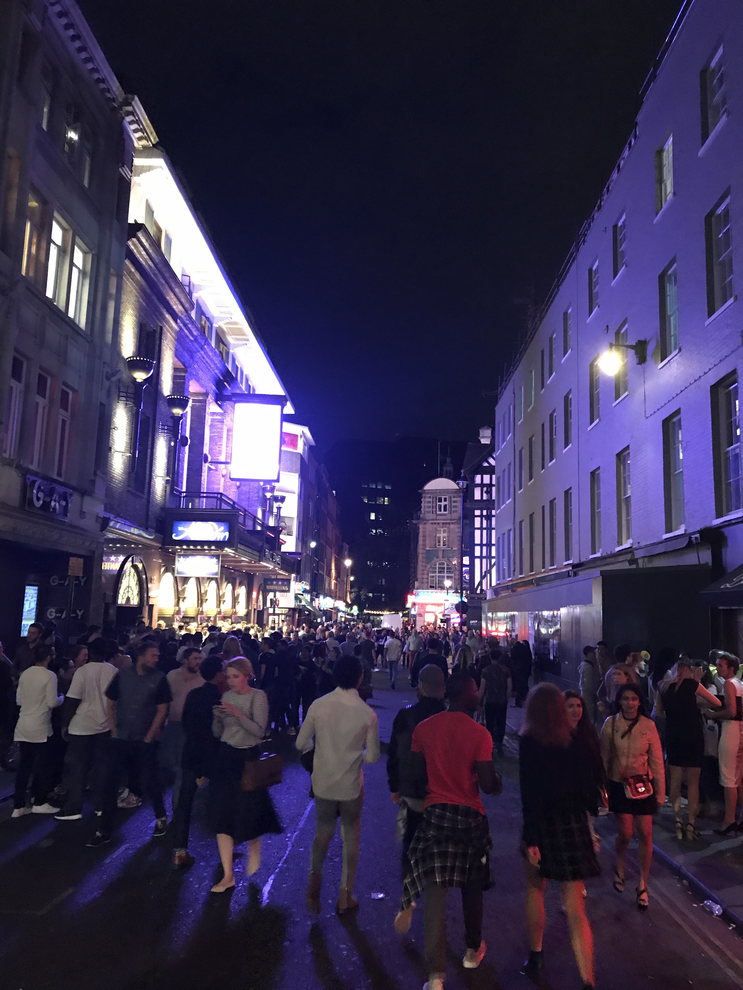 A late dinner in Soho seemed the order of the evening. Old Compton Street was a buzz (Saturday night). Not sure what this car and the street dancing was about though.