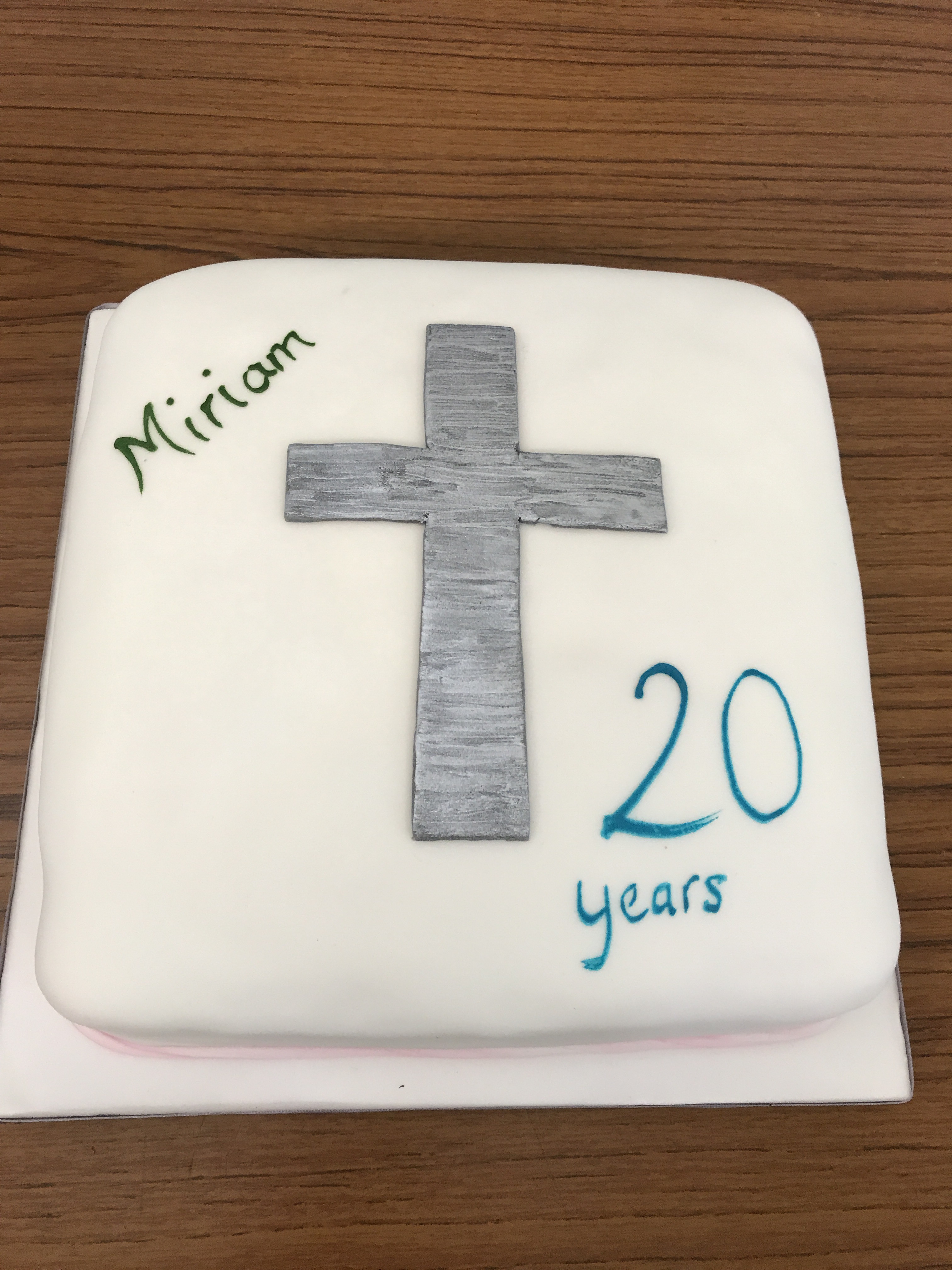 Afterwards I had a great chat over coffee with some of the parishioners. Miriam was celebrating her 20th anniversary of ordination, and there was cake.