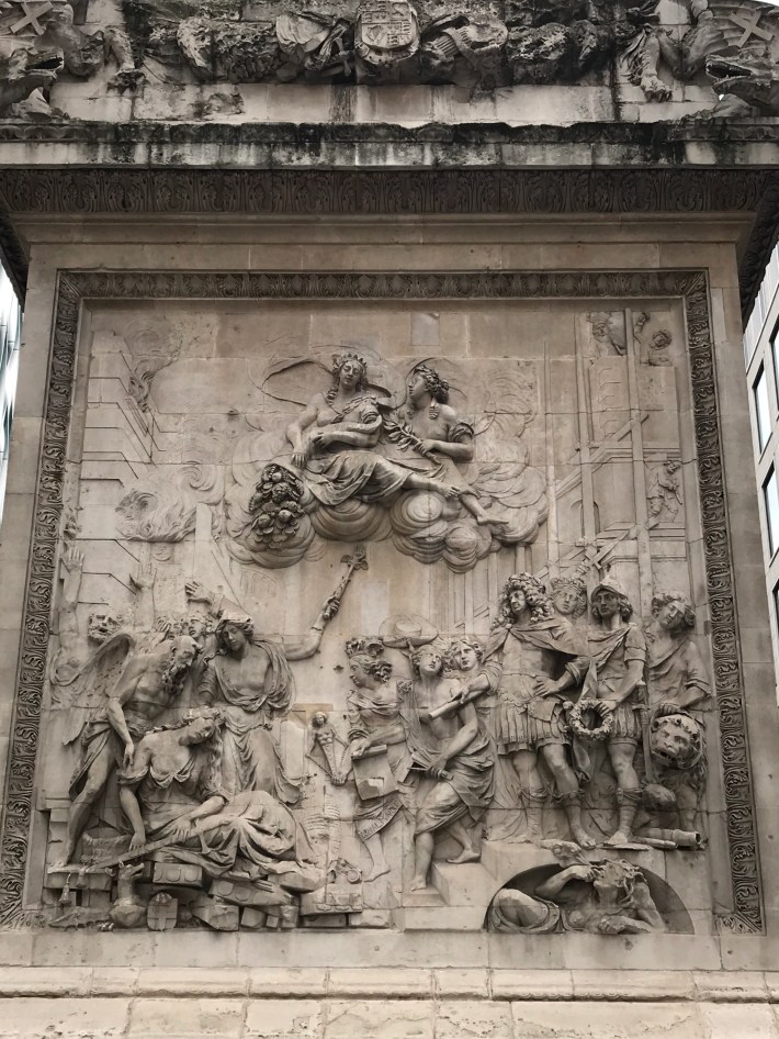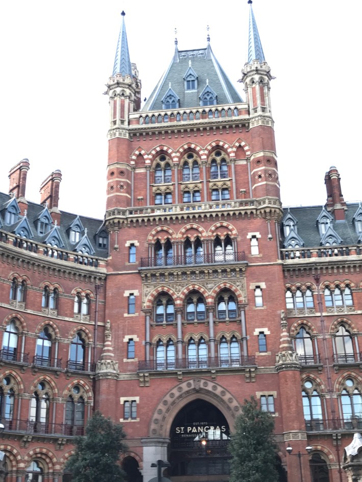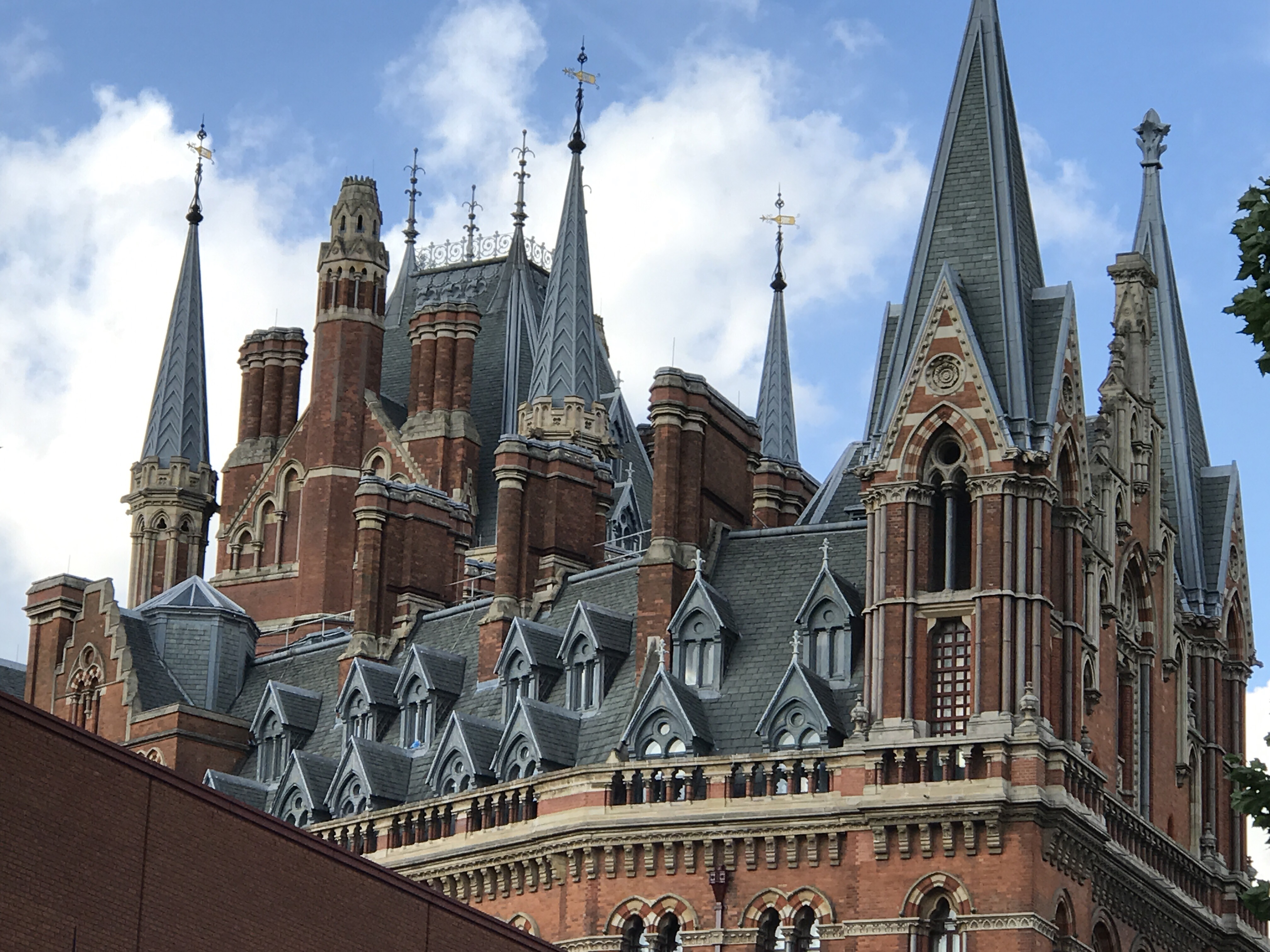 I love the intricate work embodied in the roof of St Pancras Hotel over the station entrance.