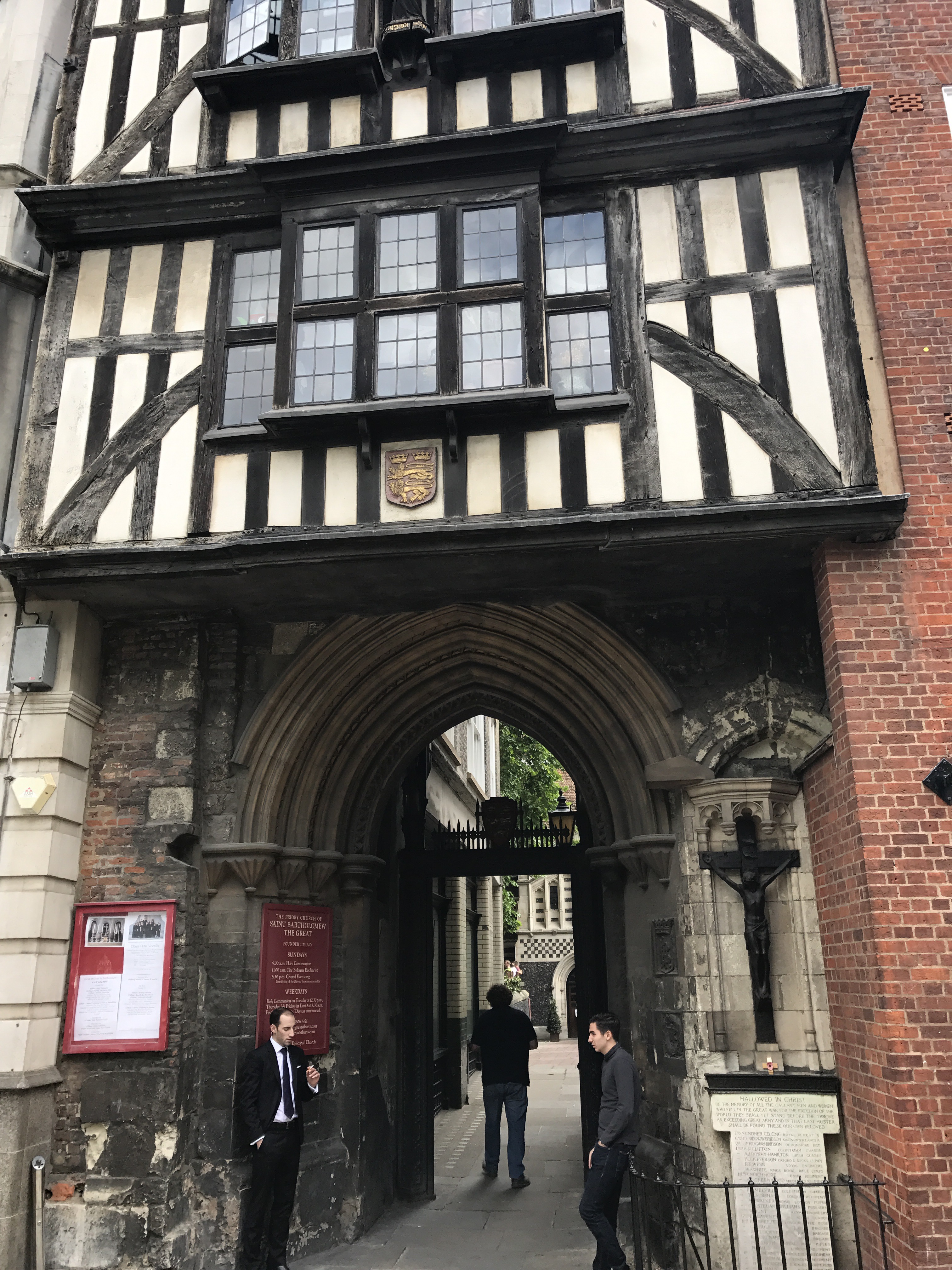 Through the Tudor entrance arch, to the church of St Bartholomew’s the Great, made more recently famous as the set for period dramas.