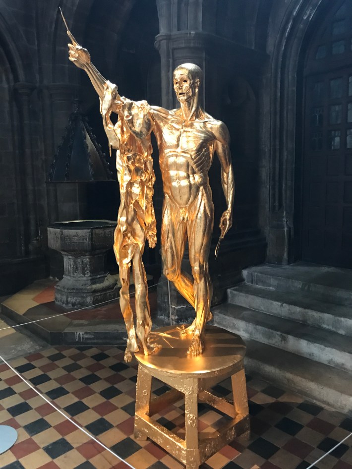Extraordinary sculpture by British artist Damian Hirst entitled ‘Saint Bartholomew, Exquisite Pain’ (2006). It is 24 carat gilded bronze.